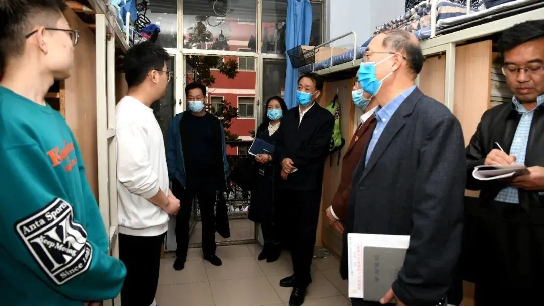 学生宿舍,对学生学习生活进行细致了解、亲切交流,询问了大家学习、生活情况中遇到的困难,并就同学们关心的问题进行了解答,同时叮嘱同学们要提高安全防范意识,服从学校规定,密切配合学校疫情常态化防控工作,自觉做好自身防护,维护校园安全,争做文明学生。