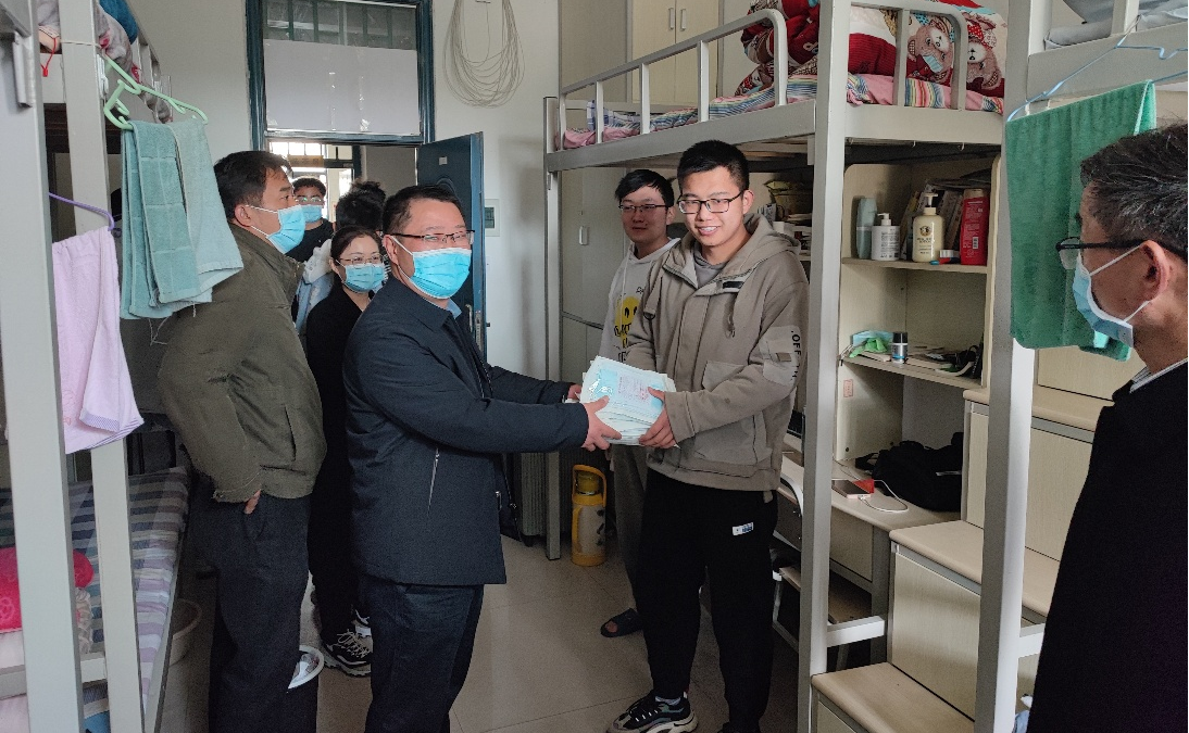 学院领导时刻紧抓与落实疫情防控工作,在走访过程中为研究生发放防疫物品,叮嘱学生重视疫情防控,规范开展科研工作。李世欣书记强调,在校园进行封闭管理期间,学生在前往三区实验室时要保证文化路校区到三区实验室的“两点一线”,保证在校内进餐,宿舍经常开窗通风,营造良好的生活环境。李书记还指出,要尽量在实验室或者图书馆进行学习,避免宿舍学习效率不高的问题,学习之余也要多锻炼身体,参加体育活动,提高自身免疫力。