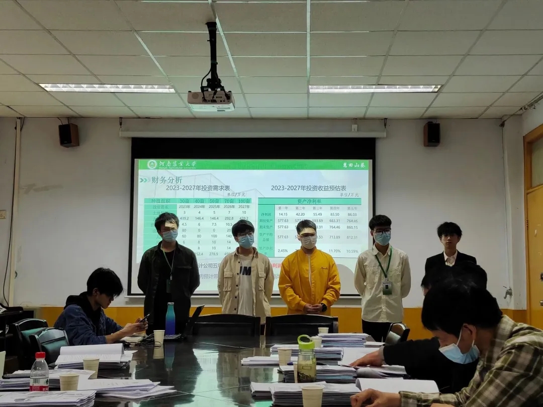 比赛现场,各参赛选手依次上台演讲,条理清晰、沉着冷静地通过PPT的形式进行项目汇报。此次“互联网+”大赛涵盖项目广泛,各参赛团队充分结合社会实际,从现代新型农业的应用、物流管理的升级运用、经济作物的种植投资、核酸检测器材的研发等方面展开汇报总结。参赛选手们立足于自身的专业优势和所学知识,就负责项目的产品介绍、市场定位、商业模式、营销策略等内容进行了详细说明。