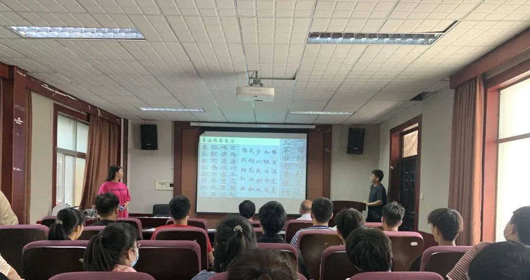 在一段精彩的优秀书画作品PPT展示后,本次大会正式拉开了帷幕。会议伊始,书画社负责人蒋长乐结合自身工作经历向大家分享了耕匠书画社成立的初心以及成立之初所遇到并克服的种种困难。他表示,中华文化的传承从来都不是形单影只的,希望大家都能够永远保持心中那份对书画的热爱,让耕匠书画社在学院永远传承下去。