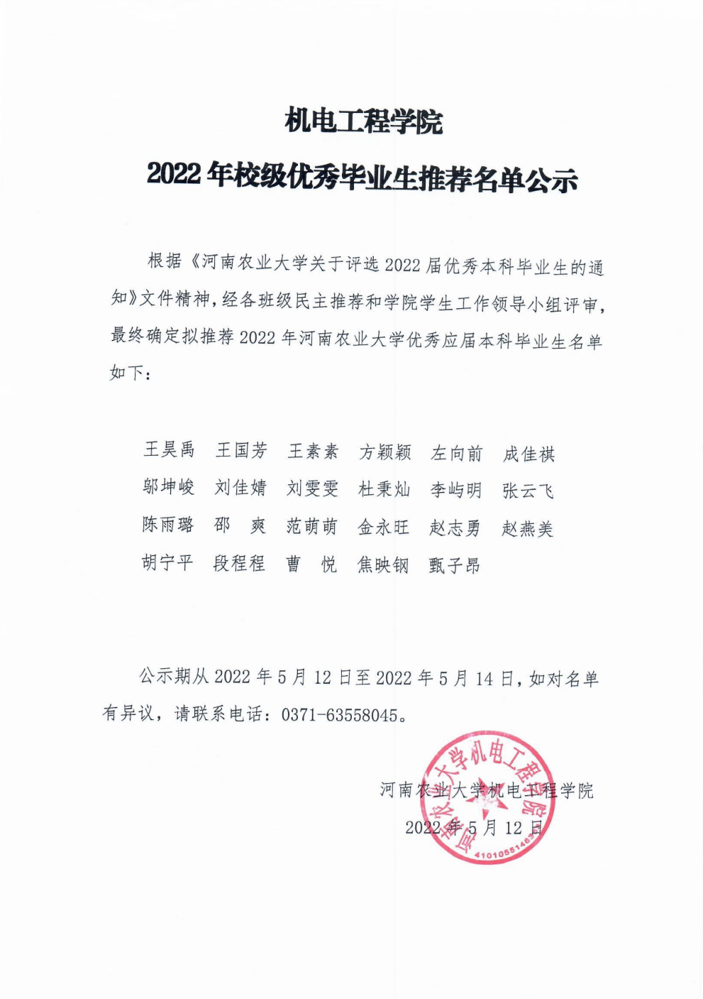 成人小说 2022年校级优秀毕业生推荐名单公示