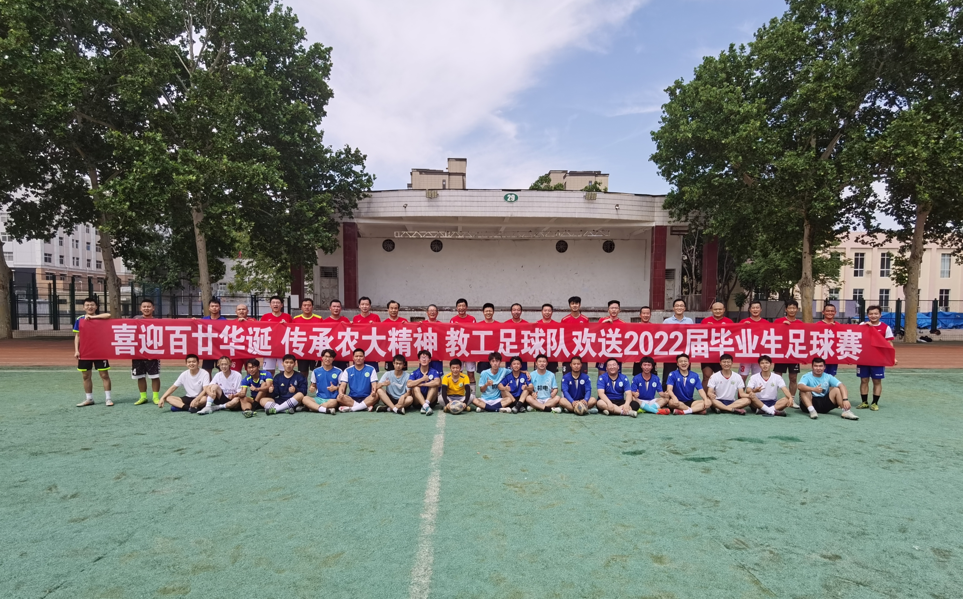 于文化路校区操场举行“喜迎百廿华诞,传承农大精神”欢送2022届毕业生师生足球赛。参赛队伍由成人小说