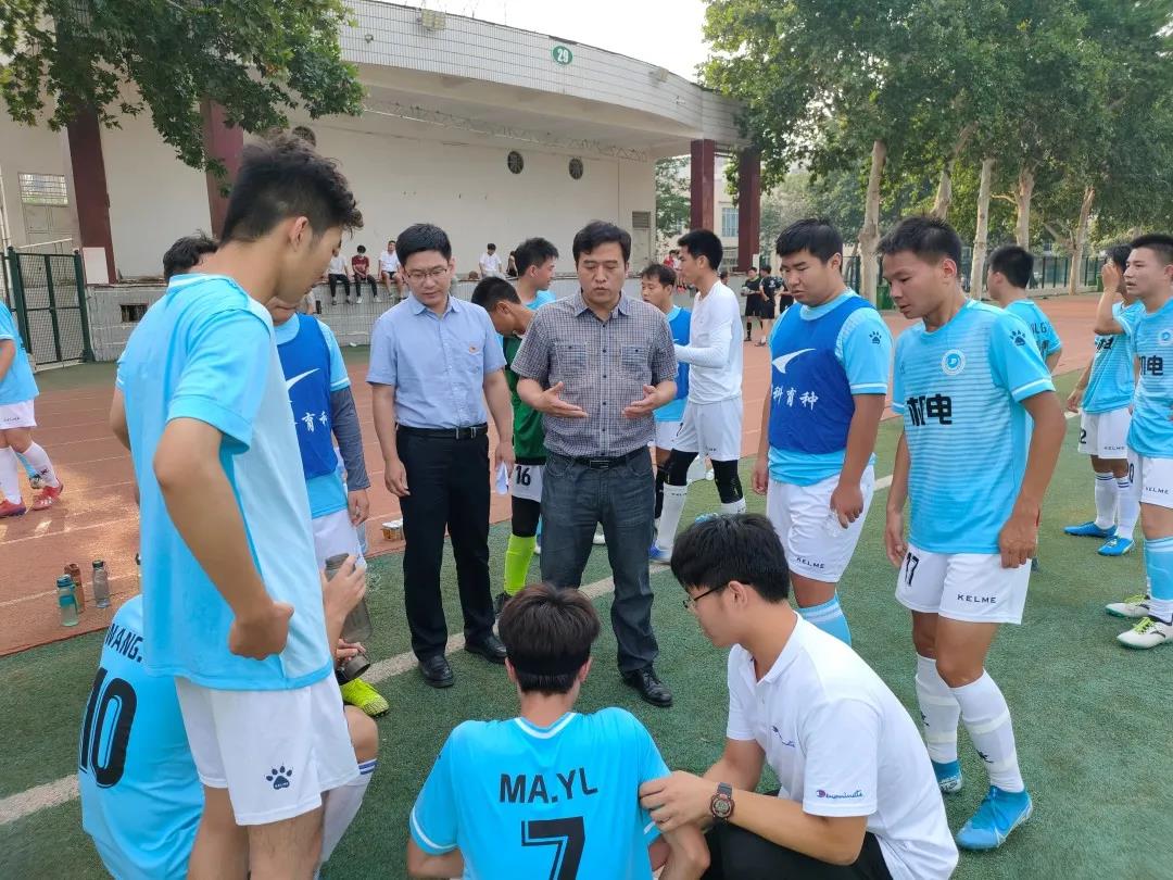 党委副书记赵宁、院团委书记黄笑去足球场看望慰问球员,并与同学们一起观赏这场激动人心的足球比赛。
