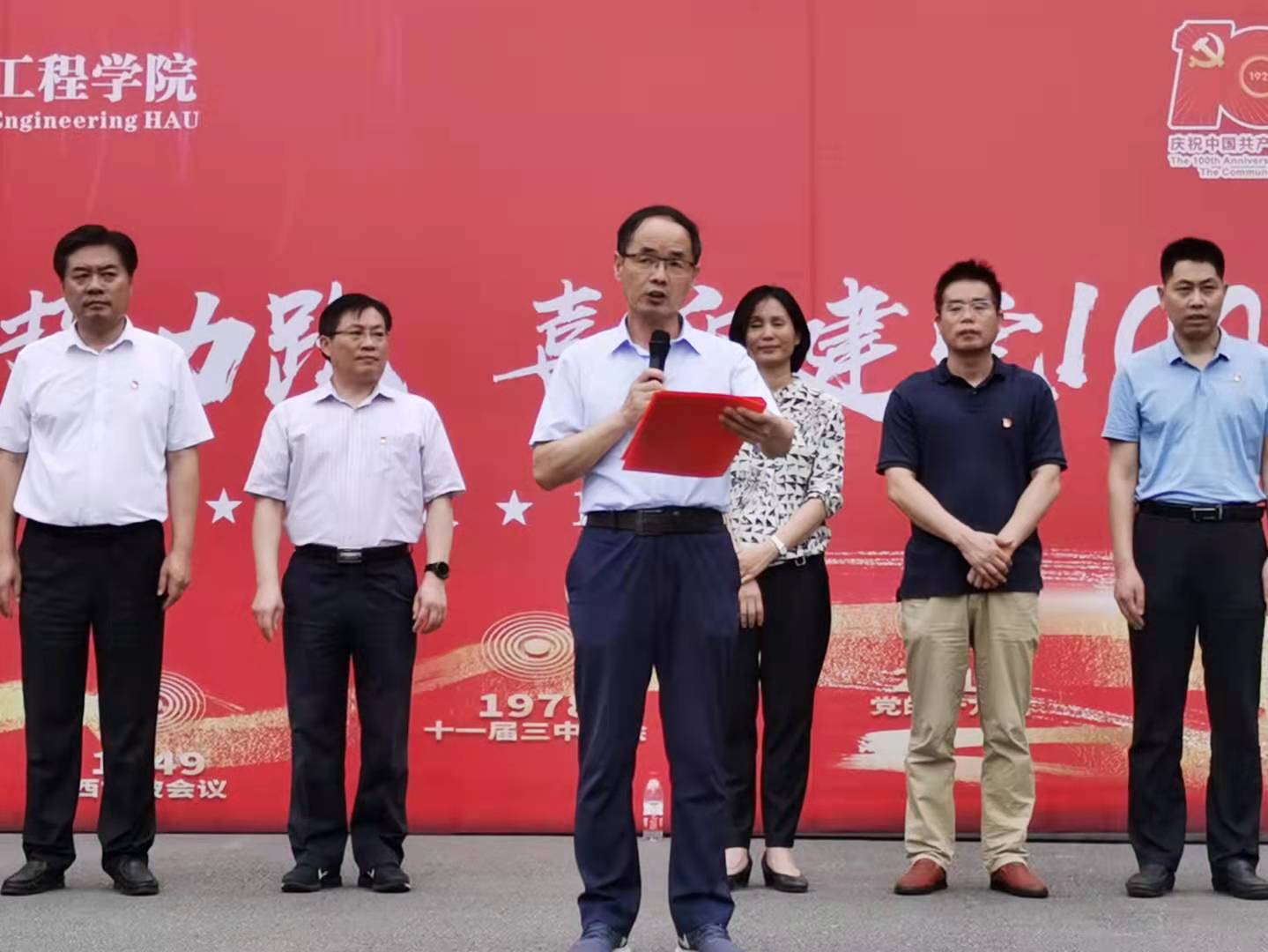 于文化路校区举行“机电百人接力跑,喜迎建党100年”主题党日活动,以百人接力长跑的形式向百年来接续奋斗的共产党人致敬。师生党员代表参加此次活动。