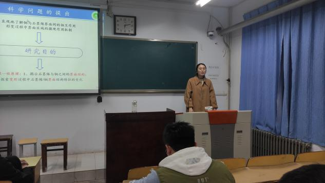 讲座中,张倩博士以“石墨烯/铜基复合材料界面结构特性及变形行为研究”为题,在纳观、微观、介观和宏观的角度对石墨烯/金属基复合材料进行多层次研究,模拟材料在不同的服役条件下的性能演变规律、失效机理实现材料性能的改善和设计。通过对材料建立理论模型,更深层次研究材料的各种特性,并探讨材料的变形机理。本次讲座展示了大量案例图片和视频,内容丰富、气氛活泼,让与会研究生对石墨烯/铜基复合材料的研究有了深入了解。