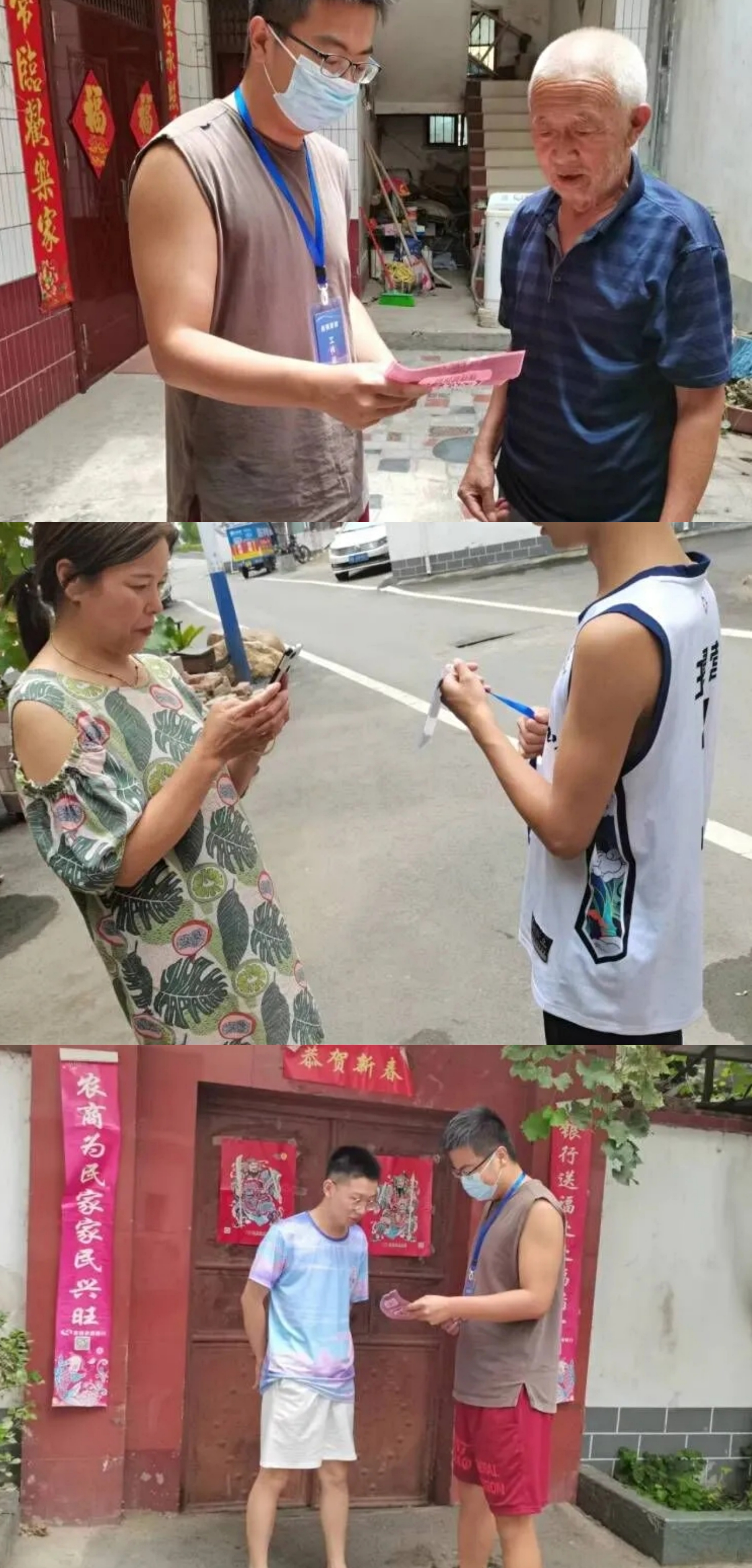 在做好自身防护的前提下,实践队员们主动参与社区、村落的清洁消毒工作,维持当地的管理秩序,走访社区住户调查情况,同时协助当地志愿者团队进行体温测量、宣传防控思想等活动。实践队员们用切实的行动向周围群众普及健康防疫知识,他们怀着满腔热情投身于基层建设,希望用自己的知识和行动为家乡发展贡献出一份力量。