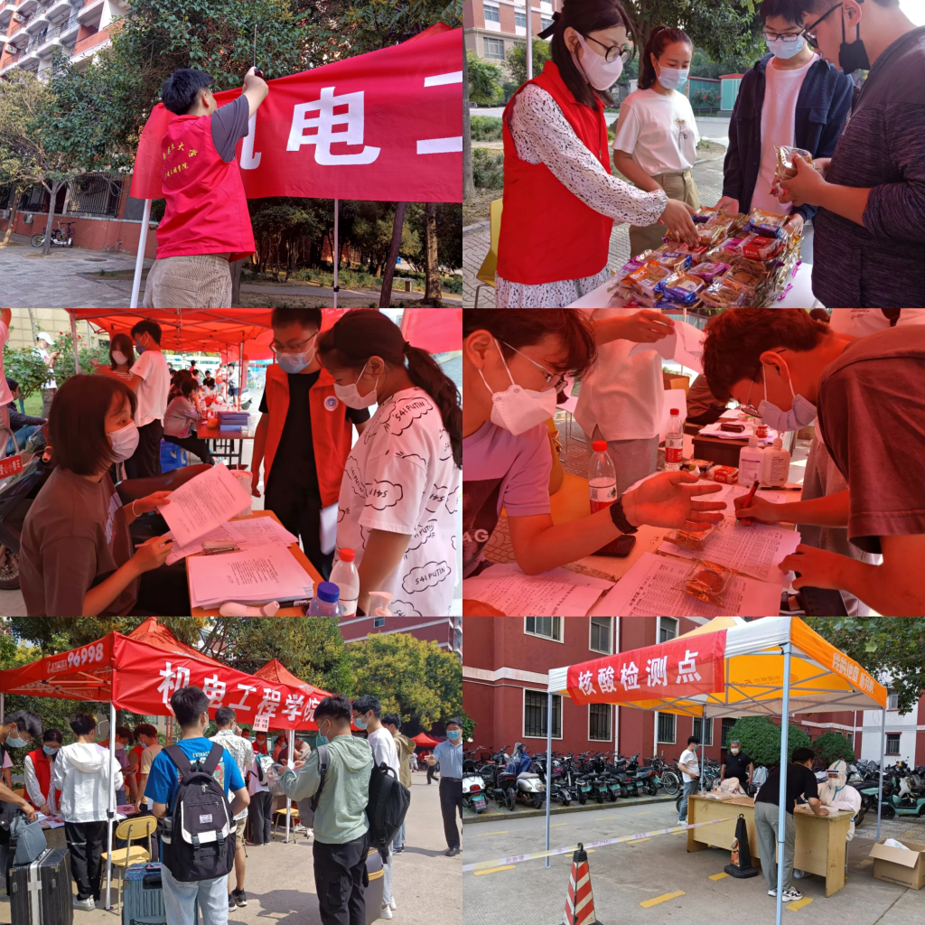 学生返校当日,学院工作人员便早早来到报到处,布置场地、准备爱心月饼和口罩等,做好各项服务保障工作,以待返校同学能够顺利完成各项报到流程。返校报到过程中,同学们在现场工作人员的指引下有序排队,依次进行身份核查、体温检测、查验健康码和行程卡、签字确认、领取爱心大礼包等流程,审核合格后及时进行核酸检测并进入宿舍开展封闭管理。