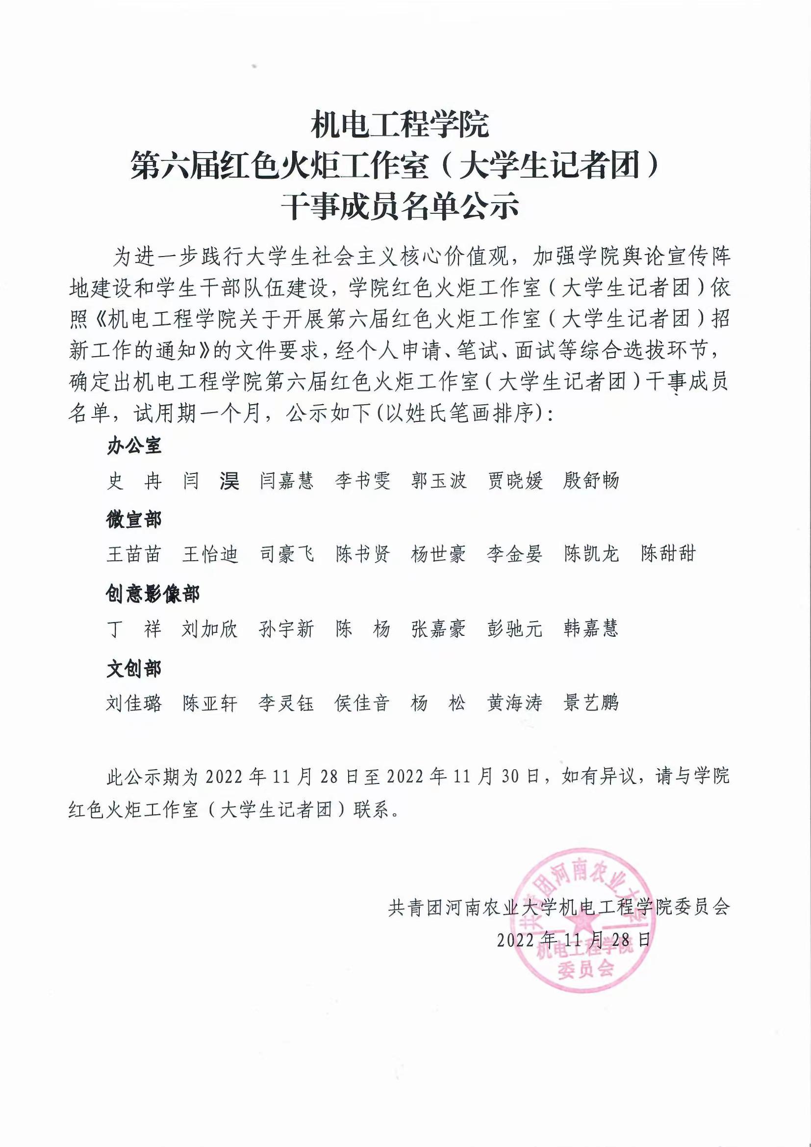 成人小说 第六届红色火炬工作室(大学生记者团)干事成员名单公示