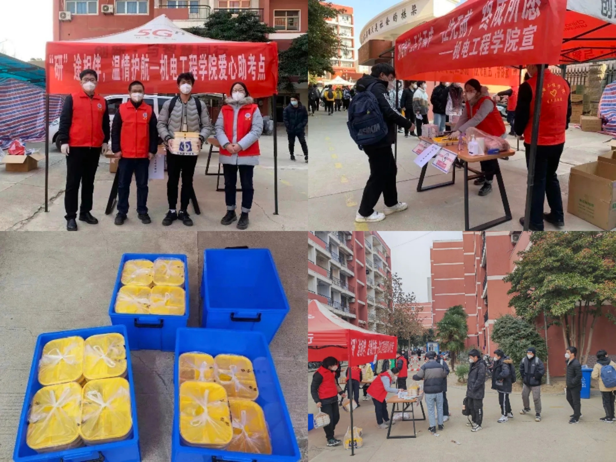 午餐准备过程中,学院克服当前疫情困难,及早做好交流沟通工作,从买餐到送餐,严格进行统计与汇总,同时充分利用保温箱,保障每位学子都能吃上热气腾腾的饭菜。助考点现场,学院师生志愿者奔忙在一线,践行责任、担当在肩,引领考研学子有序排队领取爱心午餐,并为考生们送去美好祝愿。