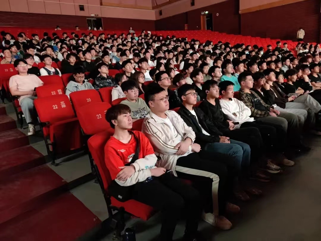 于文化路校区千人大礼堂举行“青春践行二十大,勇毅前行新征程”红色观影活动,团委副书记胡亭亭和22级全体学生共同观看爱国主义影片《万里归途》。