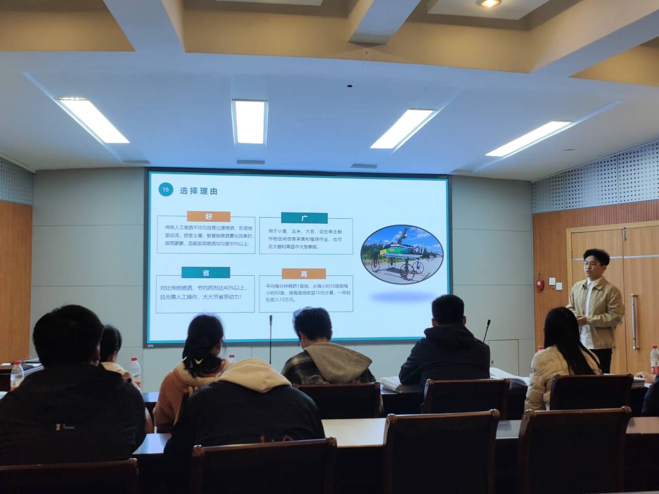 15支竞赛队伍参加此次比赛。比赛共分为PPT项目汇报和现场答辩两个环节。