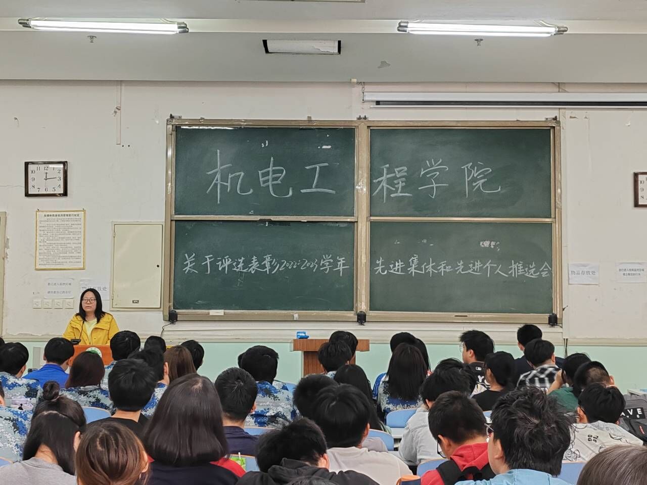 最后,黄笑对此次会议做了补充说明。他明确了先进集体和先进个人的相关信息,鼓励大家踊跃参与评优评先,为自己和集体校园生活增添一抹色彩;要求各班长支书要按时召开班会,提高学生的安全防范意识,督促学生完成青年大学习。