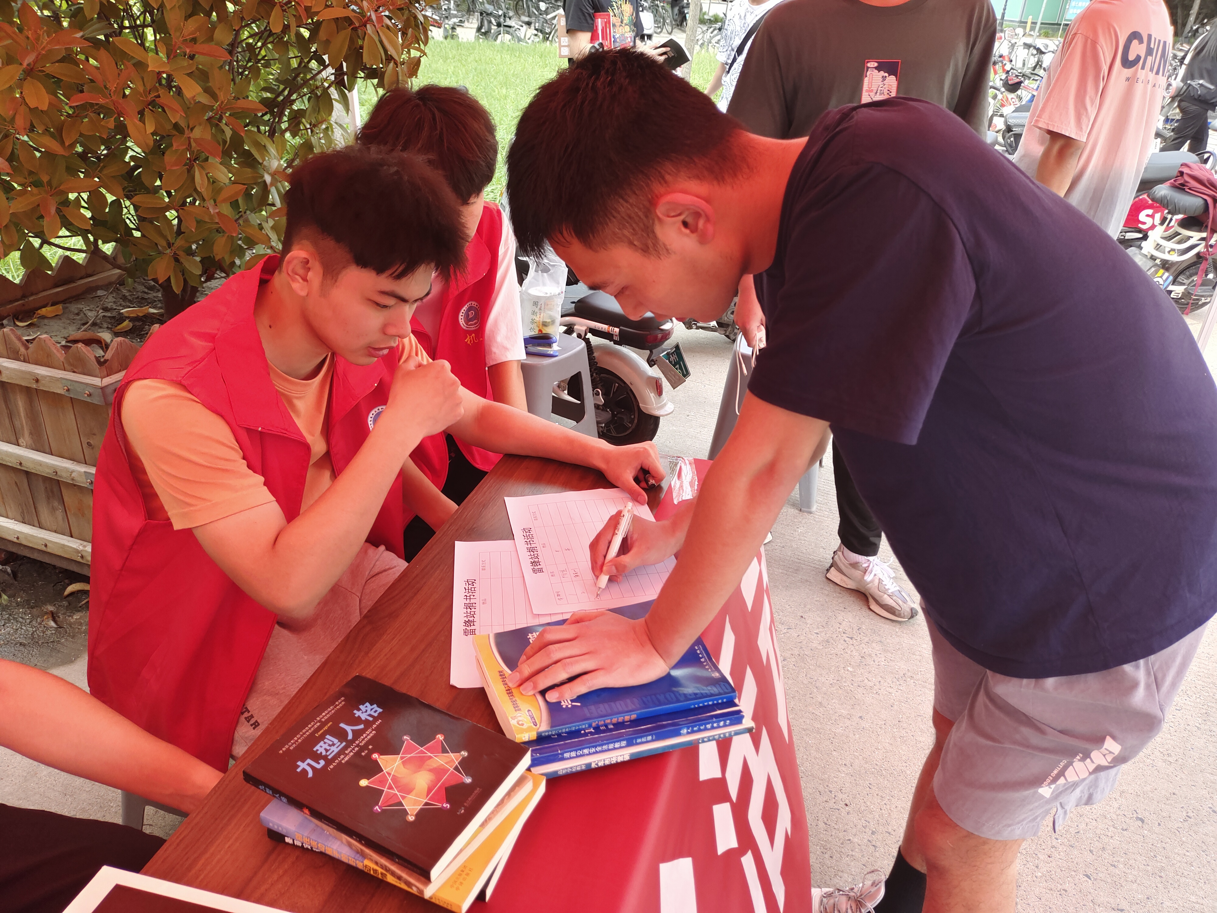 在桃李园学生公寓举办“书韵留香,迢迢递情,聊赠于卿,助卿远航”毕业生捐书活动。年级辅导员孙改革到现场参加并进行指导。
