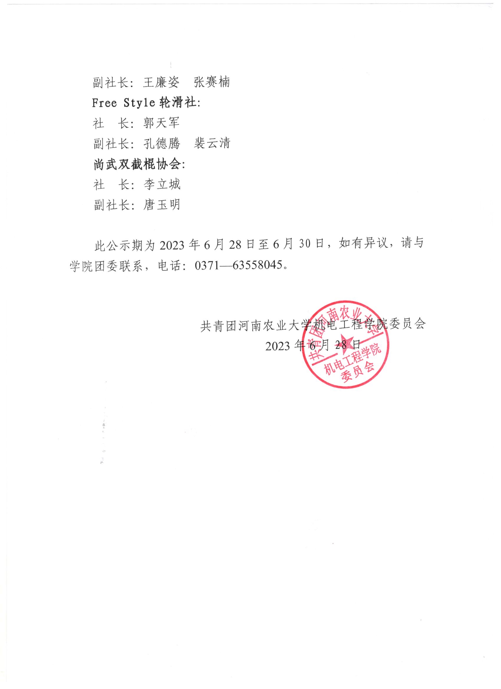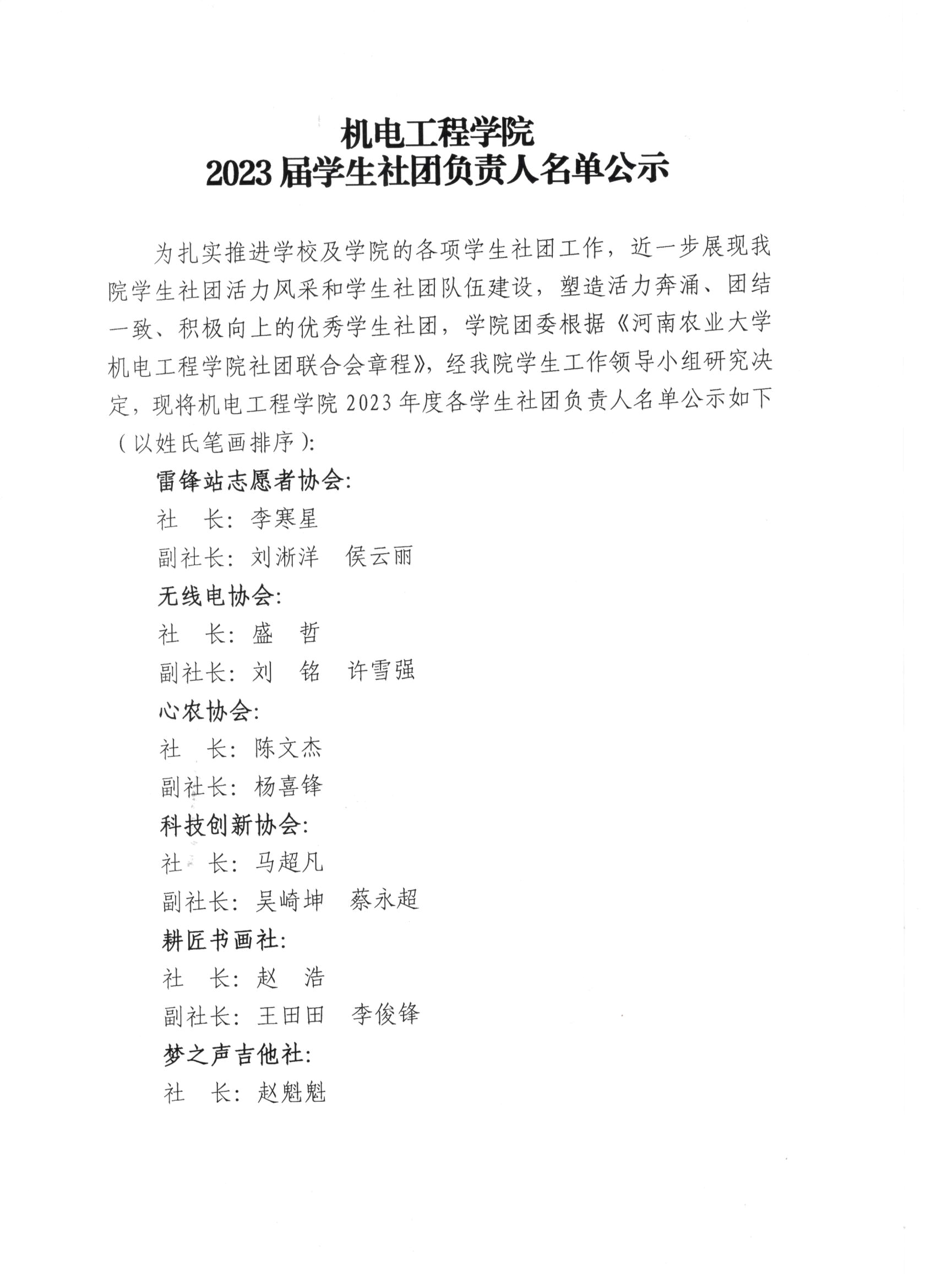 为扎实推进学校及学院的各项学生社团工作,近一步展现成人小说 学生社团活力风采和学生社团队伍建设,塑造活力奔涌、团结一致、积极向上的优秀学生社团,学院团委根据《成人小说 社团联合会章程》,经成人小说 学生工作领导小组研究决定,现将成人小说 2023年度各学生社团负责人名单公示如下(以姓氏笔画排序):