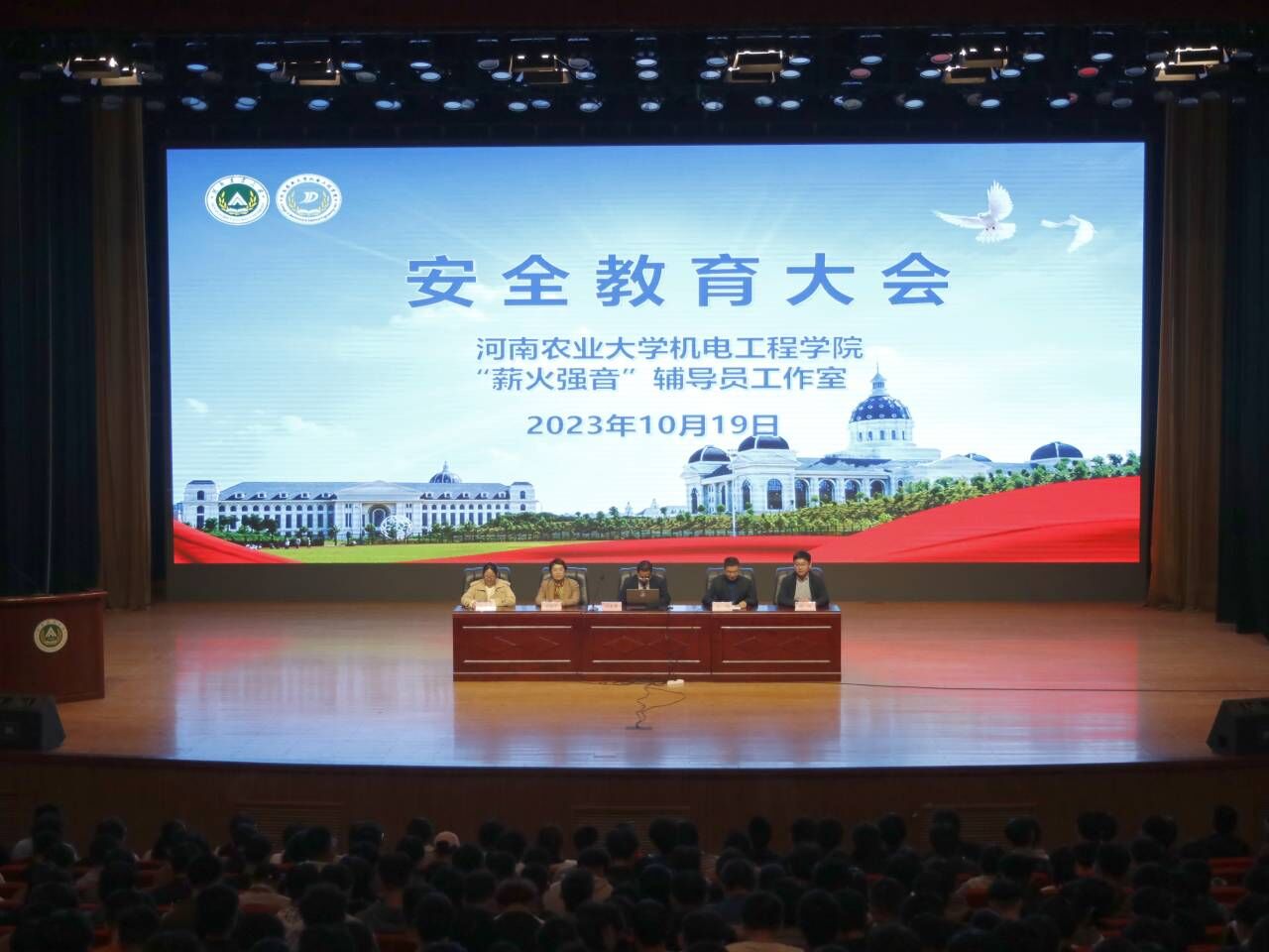 于文化路校区千人大礼堂举行安全教育宣讲大会,校保卫处处长刘全军,院党委副书记宋晶,副院长刘淑杰,团委书记黄笑出席此次大会,各年级辅导员及22级、23级全体学生参加会议。