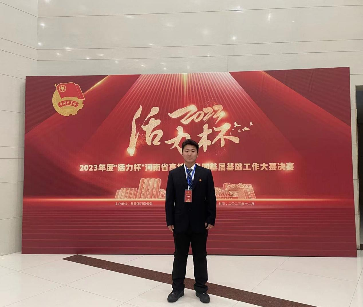 交通运输专业2020级2班团支部团支书周承博代表团支部参加比赛并现场汇报。比赛中,周承博从容应对,热情洋溢,应答自如,以优异成绩助力团支部荣获2023河南省“活力团支部”。充分展示了新时代优秀团干部的风采和高校团支部的优良好作风。
