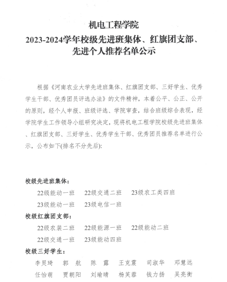 成人小说 2023-2024学年校级先进班集体、红旗团支部、先进个人推荐名单公示