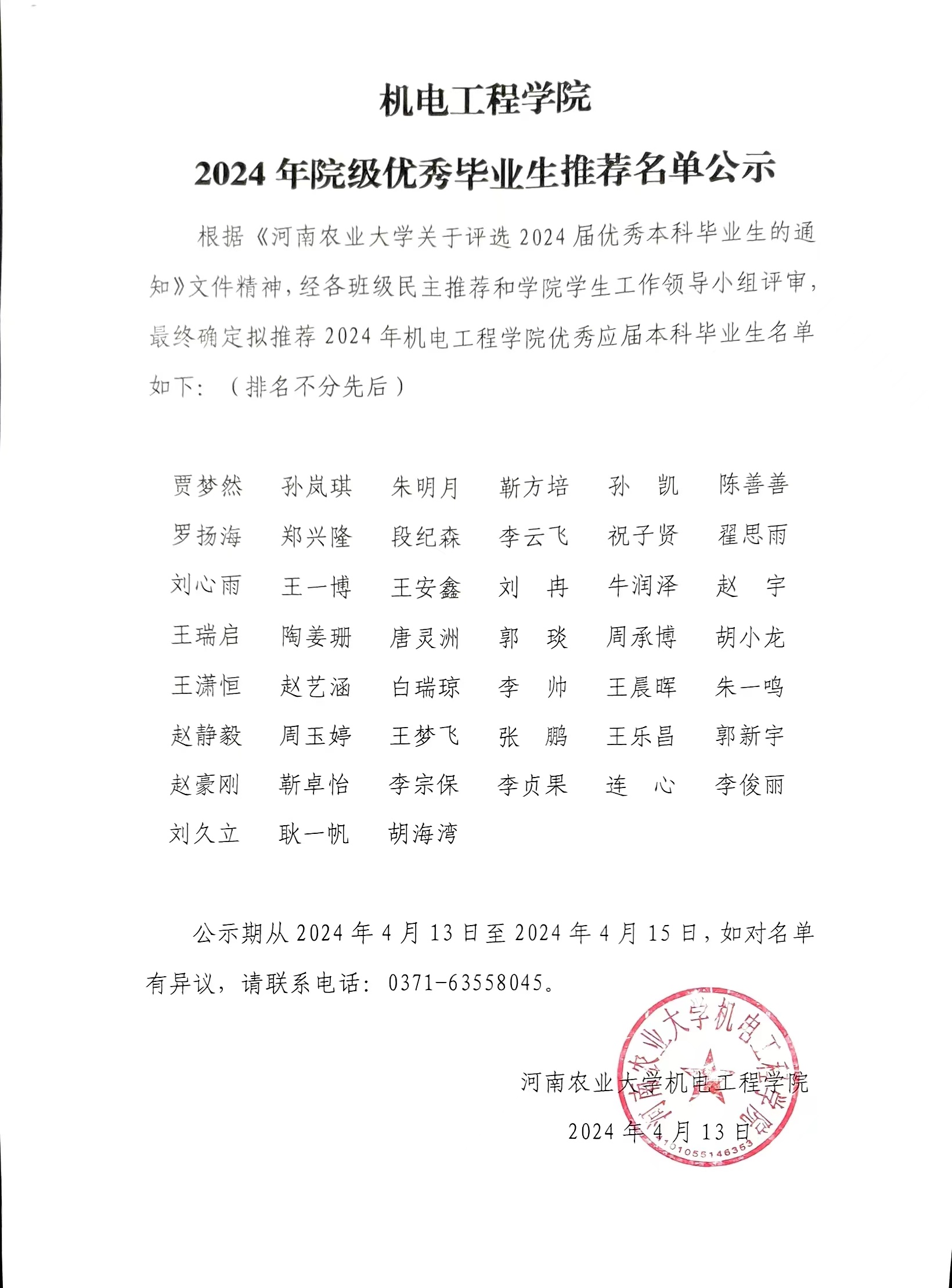 根据《成人小说 关于评选2024届优秀本科毕业生的通知》文件精神,经各班级民主推荐和学院学生工作领导小组评审,最终确定拟推荐2024年成人小说 优秀应届本科毕业生名单如下:(排名不分先后)