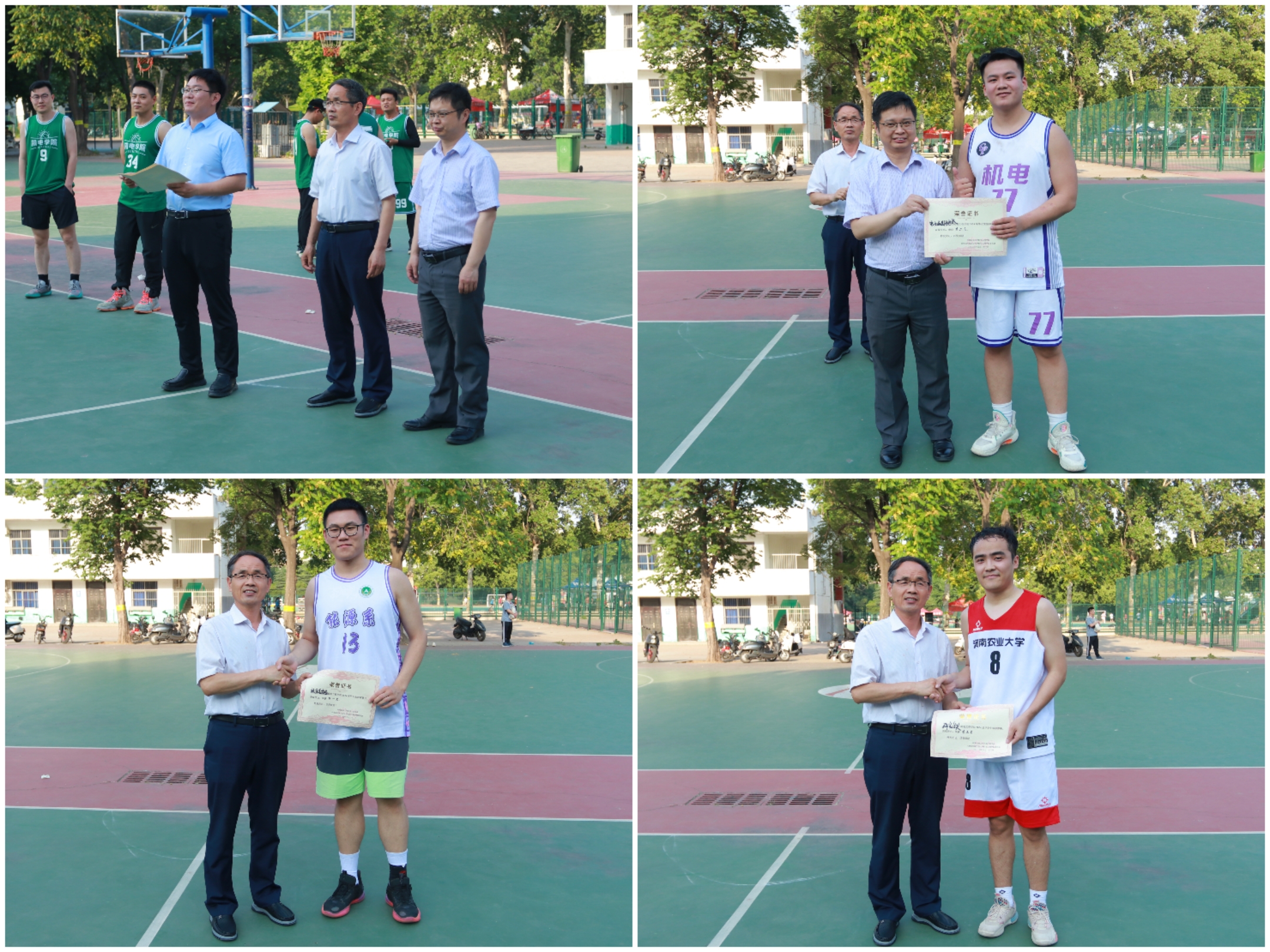 经过多日的激烈角逐,各奖项终于尘埃落定。李世欣和宋晶为获胜队伍颁奖,表达了对他们优异表现的肯定与鼓励,希望他们在未来的道路上继续对篮球的热爱和追求,将比赛中的拼搏精神带到未来工作和生活中,不断挑战自我、超越自我。