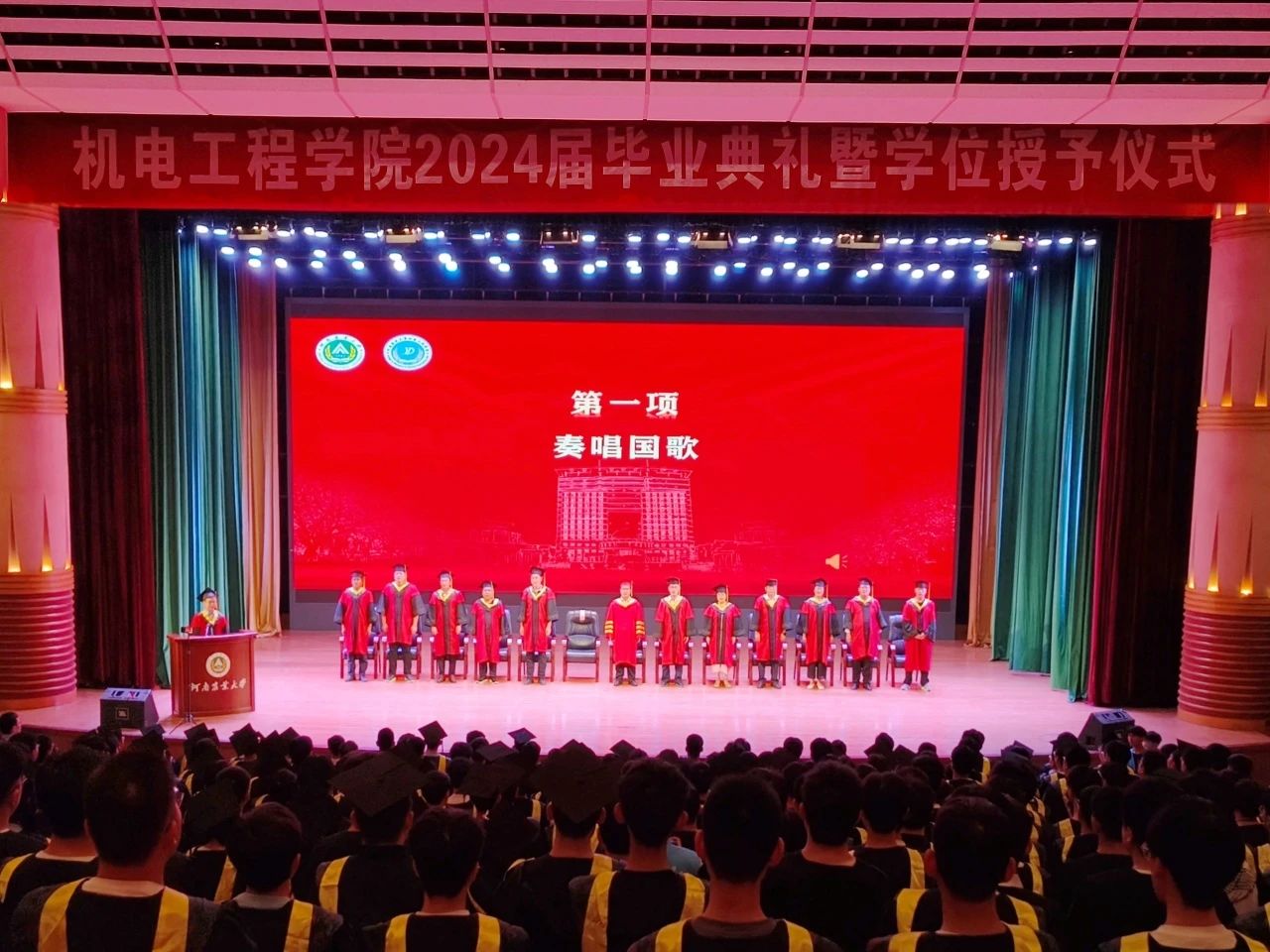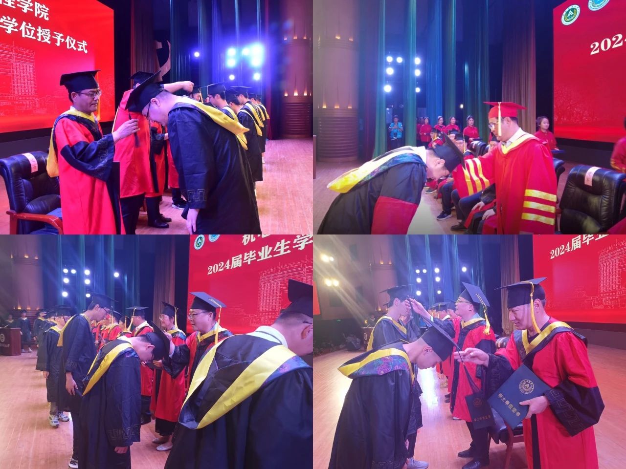 于文化路校区千人大礼堂举行2024届毕业典礼暨学位授予仪式。院领导班子、院学位评定委员会成员、毕业班专业辅导员(班主任)、专兼职辅导员、2024届全体毕业生参加本次活动,活动由宋晶主持。