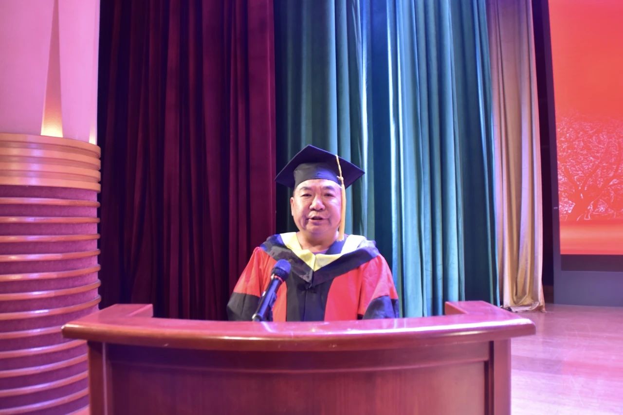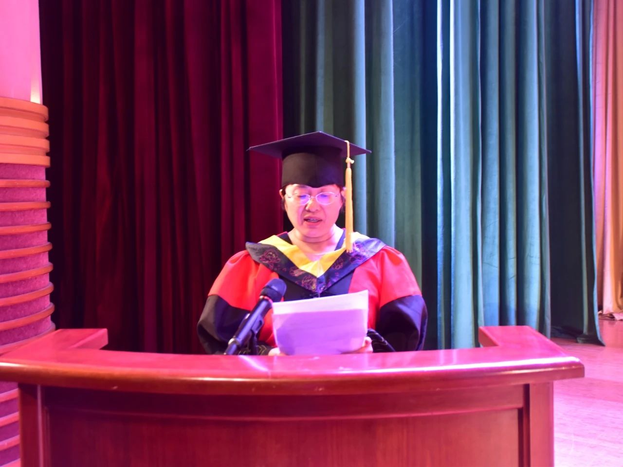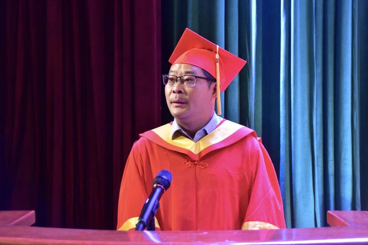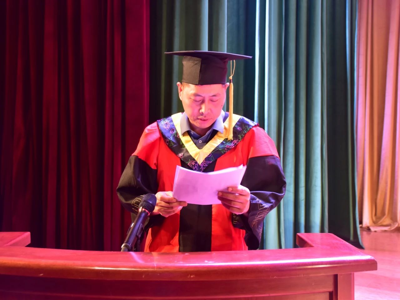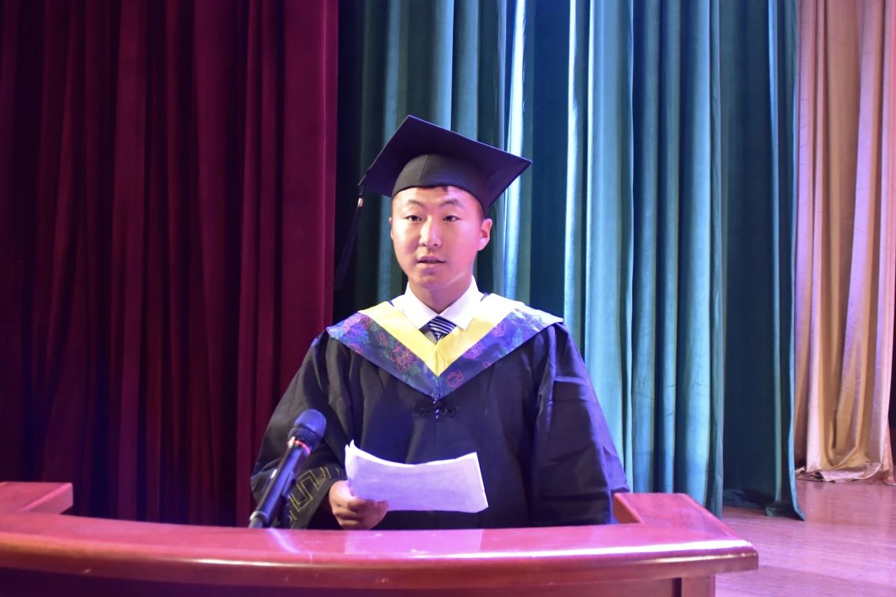 教师代表刘圣勇教授进行发言,他用感恩,挑战,责任三个词对同学们提出最后的嘱托,希望大家可以怀着感恩的心和勇敢的信念,肩负起责任和担当,迎接未来的挑战,在未来的人生道路上实现自己的梦想,成为国家和社会的栋梁之才。最后,他用一首诗表达了对同学们殷切的期望以及最真诚的祝福。