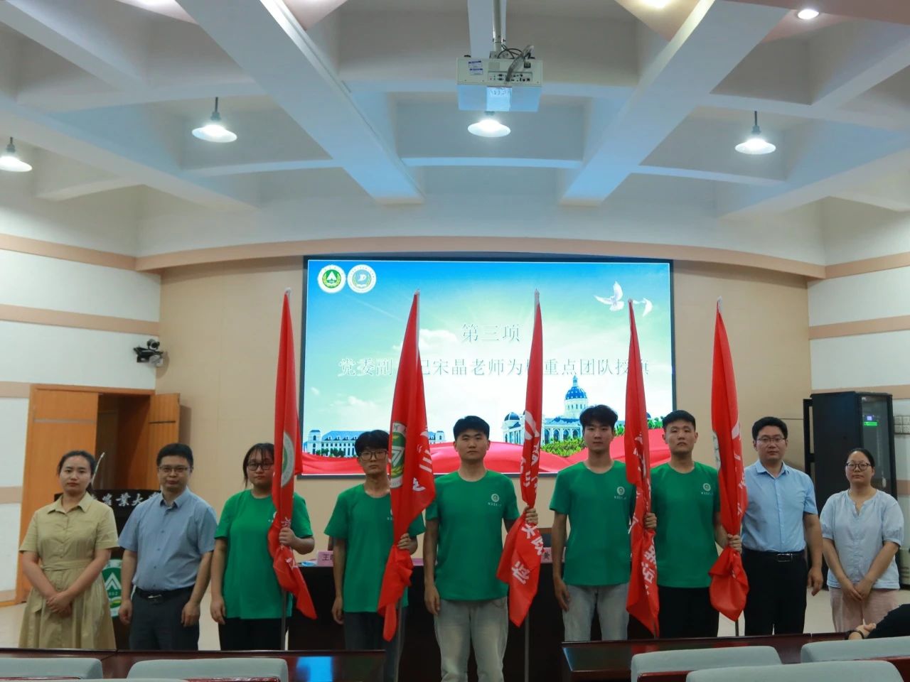 暑期社会实践文件》。社会实践团队代表朱飞扬进行发言,他首先感谢学院提供实践的机会,表示实践是提升素质和了解社会的重要途径,有利于大学生认识自身不足,此次活动与农村联系紧密,对乡村振兴有激励作用,并表示要积极完成任务,展现机电学子风采。最后宋晶为校重点团队授旗并合影留念。