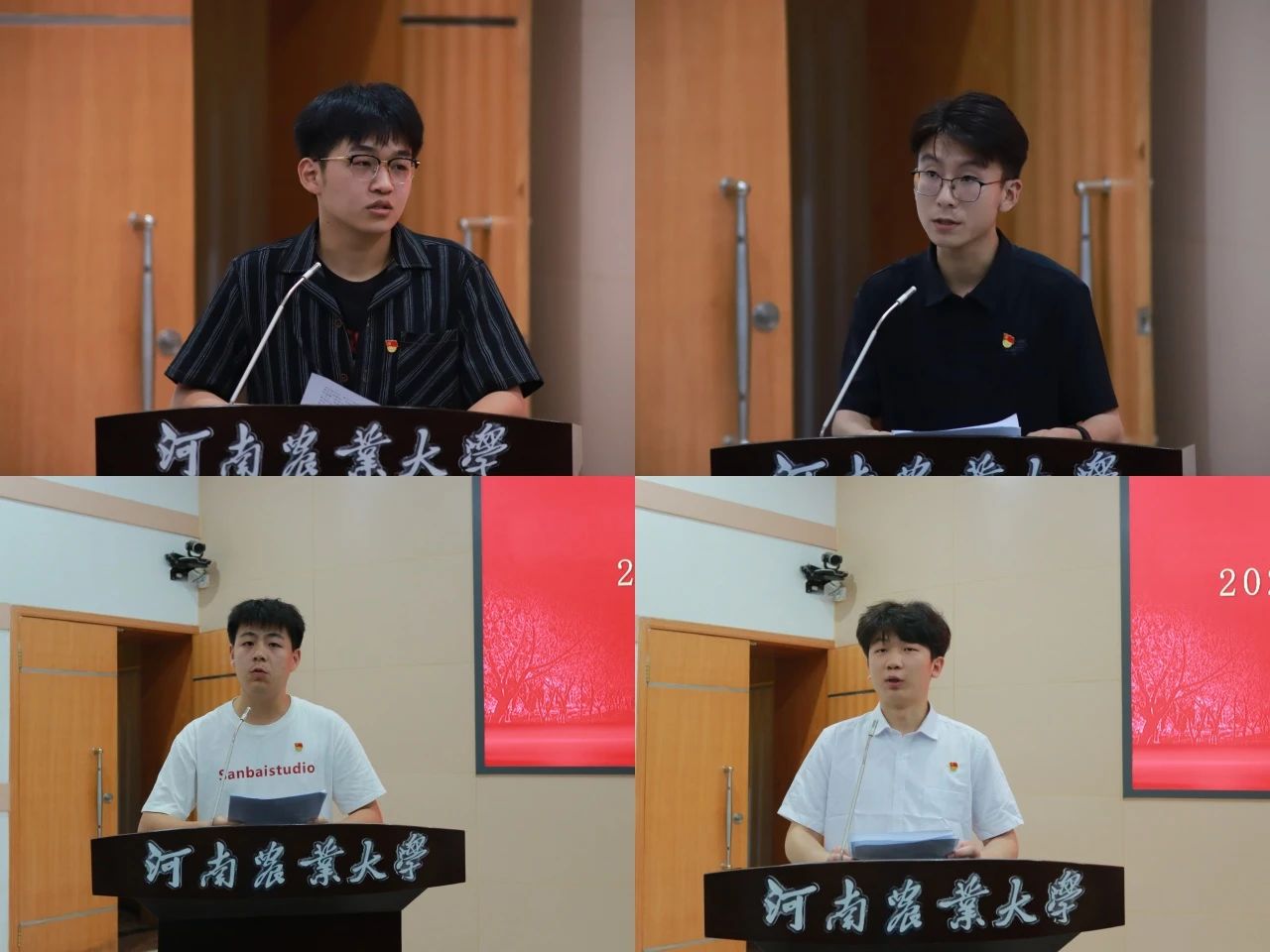 团委办公室主任李炅琦作了2023-2024年度任期述职报告,并对新一届团委成员提出一些要求和建议;学生党建办公室负责人田永康对一直以来支持学生工作的领导老师和辛苦付出的成员们表示感谢,并向新一届成员分享心得体会;学生会主席范宜卓对过去一年在院党委领导等多方助力下取得的成绩及存在的问题进行总结;大学生记者团团长李起俊从加强队伍建设、强化平台运营等方面进行工作汇报,还分享个人感悟,并希望新一届成员不忘初心为学院的发展作出贡献。