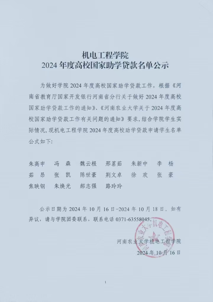 为做好学院2024年度高校国家助学贷款工作,根据《河南省教育厅国家开发银行河南省分行关于做好2024年度高校国家助学贷款工作的通知》、《成人小说 关于2024年度高校国家助学贷款工作有关问题的通知》要求,结合学院学生实际情况,现成人小说 2024年度高校助学贷款申请学生名单公式如下: