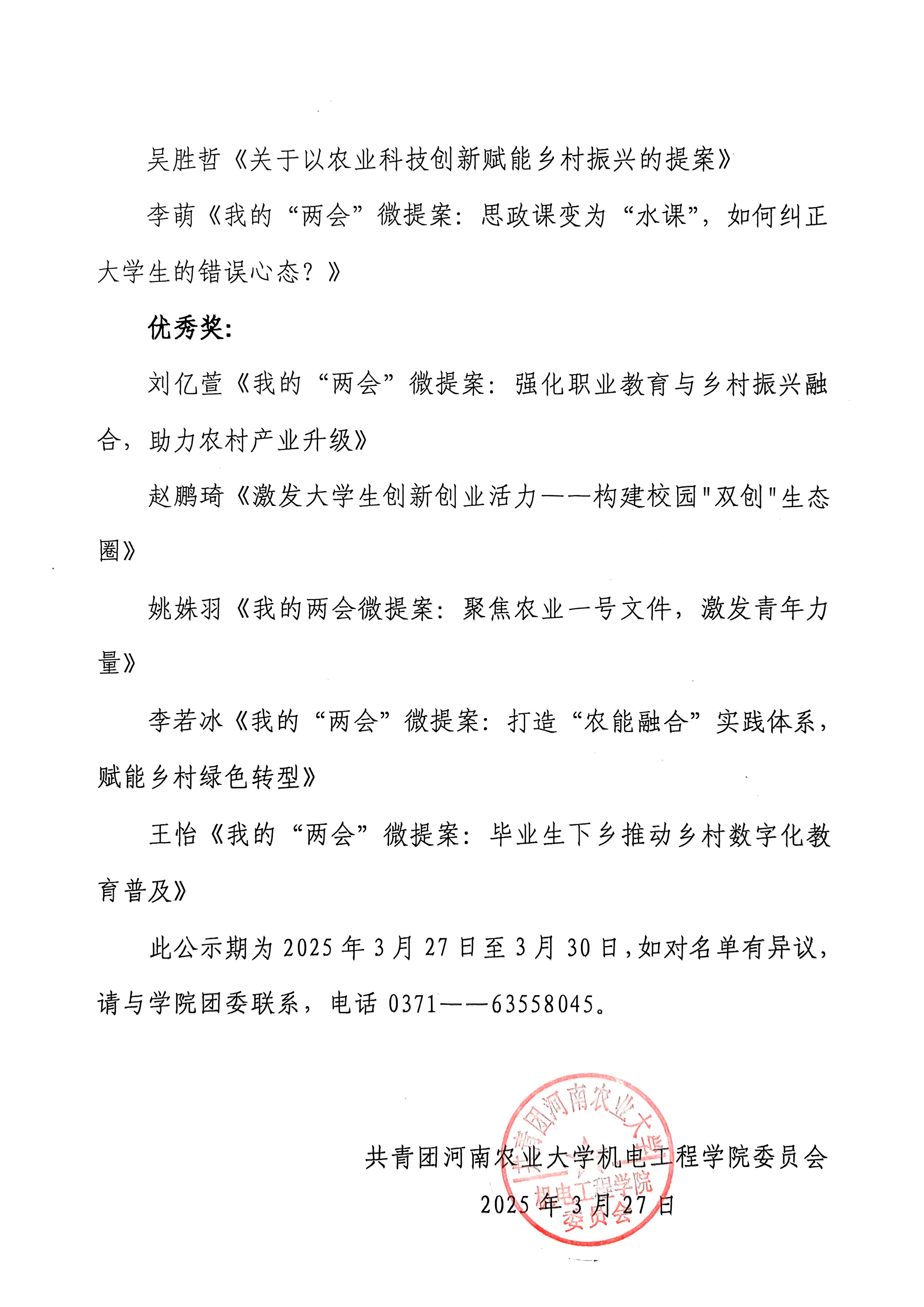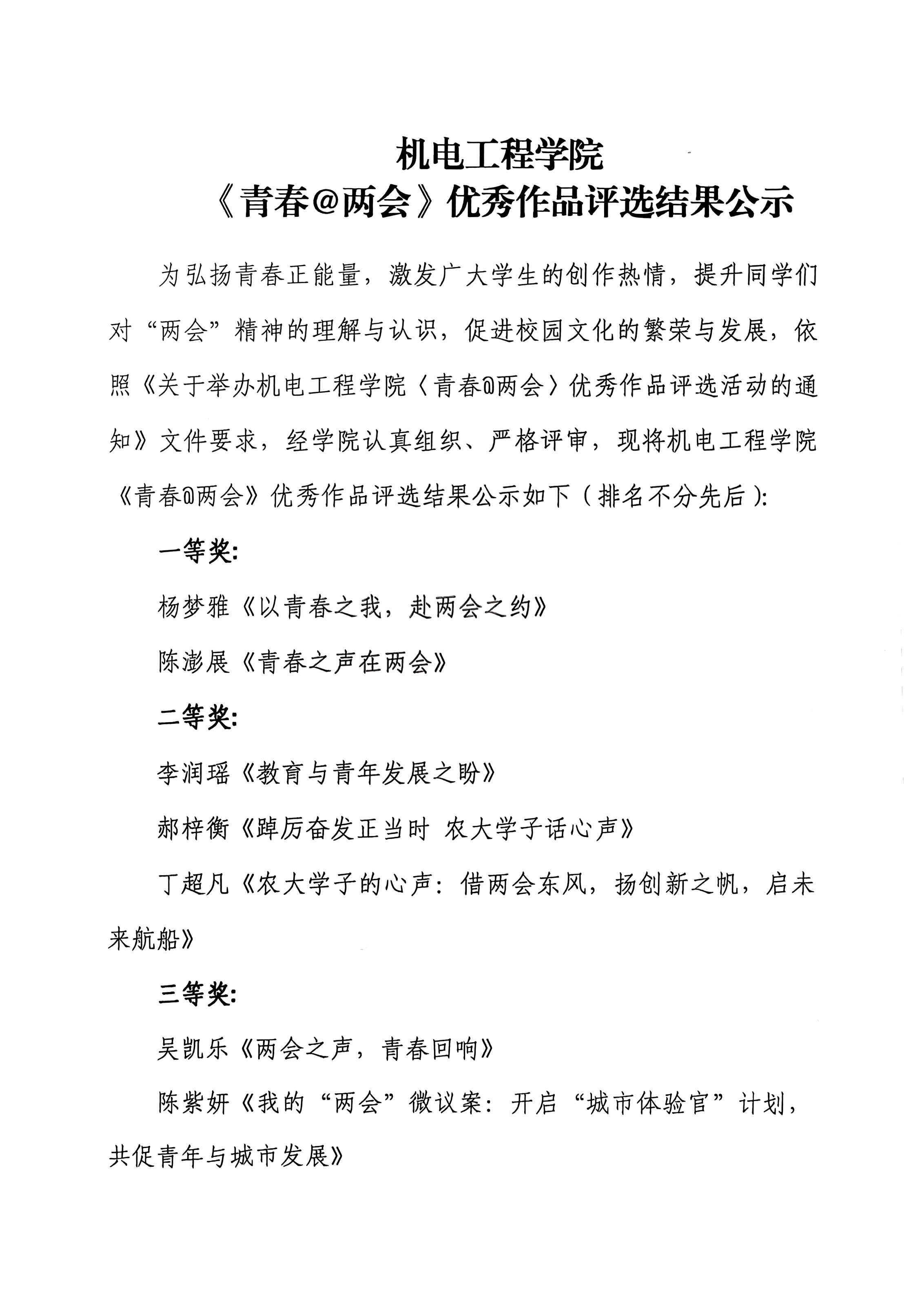 为弘扬青春正能量,激发广大学生的创作热情,提升同学们对“两会”精神的理解与认识,促进校园文化的繁荣与发展,依照《关于举办成人小说 <青春@两会>优秀作品评选活动的通知》文件要求,经学院认真组织、严格评审,现将成人小说 《青春@两会》优秀作品评选结果公示如下(排名不分先后):