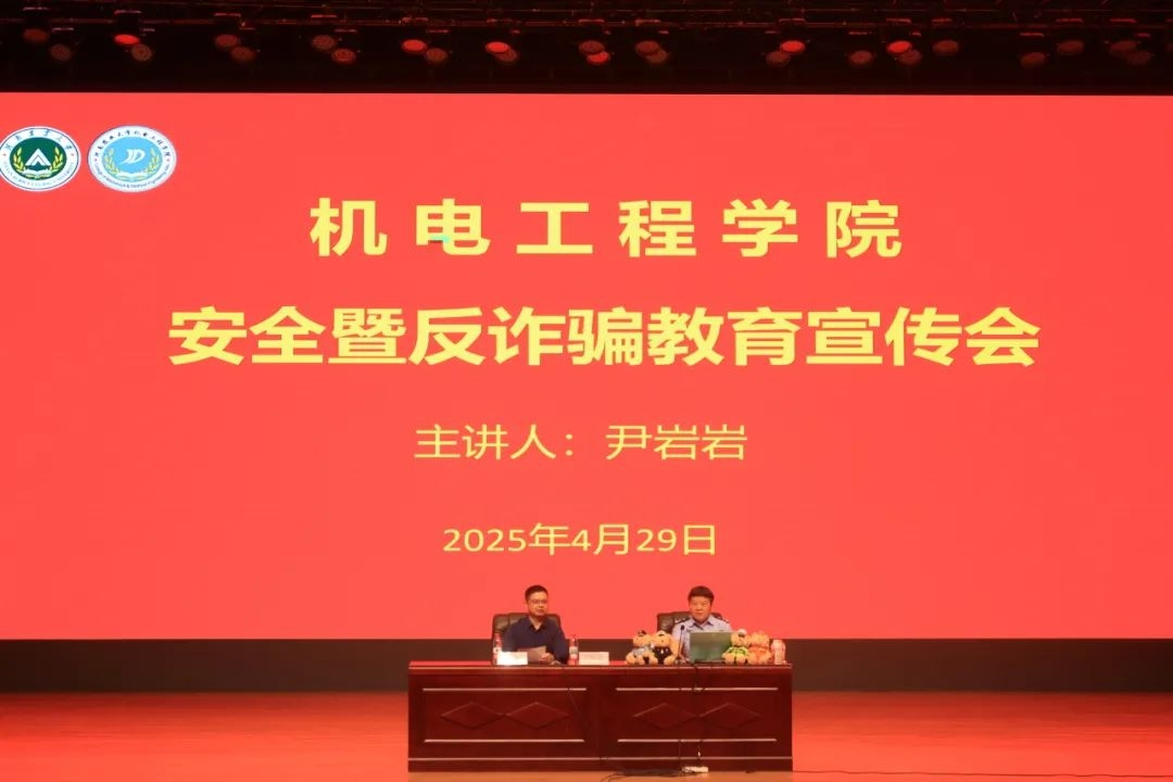 于文化路校区千人大礼堂召开安全暨反诈骗教育宣传会。本次会议特邀东风路派出所民警尹岩岩担任主讲,院党委副书记宋晶、院团委副书记胡亭亭、各年级辅导员及22、23、24级学生共同参与。