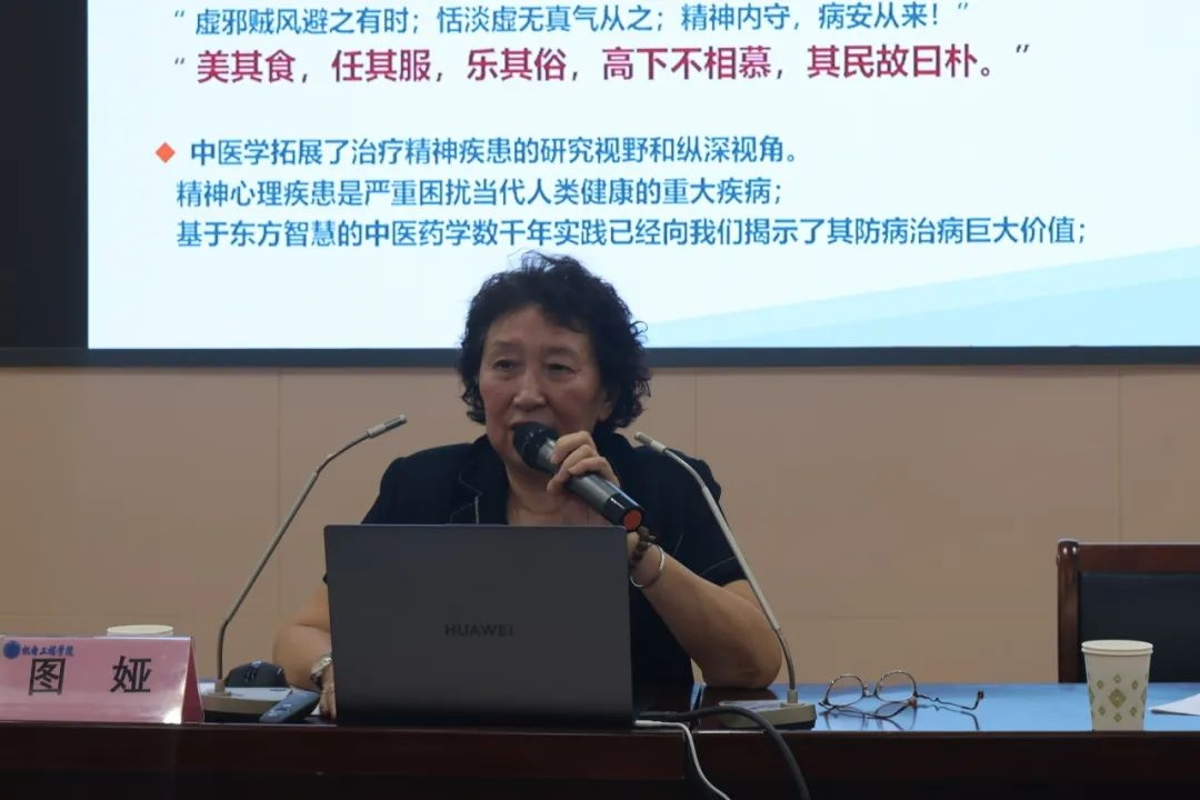 讲座中,图娅教授凭借深厚的专业功底,从脑科学、神经科学及认知科学等前沿视角切入,展开深入浅出的讲解。她不仅深入剖析了中医学与人脑疾病、身心健康之间的内在联系,还结合大量生动详实的案例,全方位阐释了中医药学与脑科学研究在化解学生心理问题方面的独特优势。教授巧妙地将晦涩难懂的科学理论转化为通俗易懂的知识,为在场师生带来了一场知识盛宴,让大家对身心健康有了全新的认识。