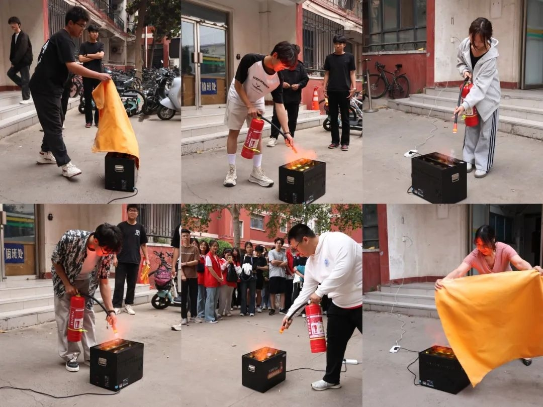 傍晚时分则聚焦宿舍场景,由学生会成员主导教学。学生会成员化身“安全讲解员”在宿舍楼下。他们不仅对灭火器、灭火毯等装备进行二次实操强化,更结合宿舍用电隐患、狭小空间逃生难点等实际情况,分享安全用电规范、不同火灾场景下的自救互救技巧,着重提醒违规电器使用、私拉电线等行为的危害性。同时,活动还预告了后续消防演练计划,邀请同学们在模拟火场中深化实践能力。