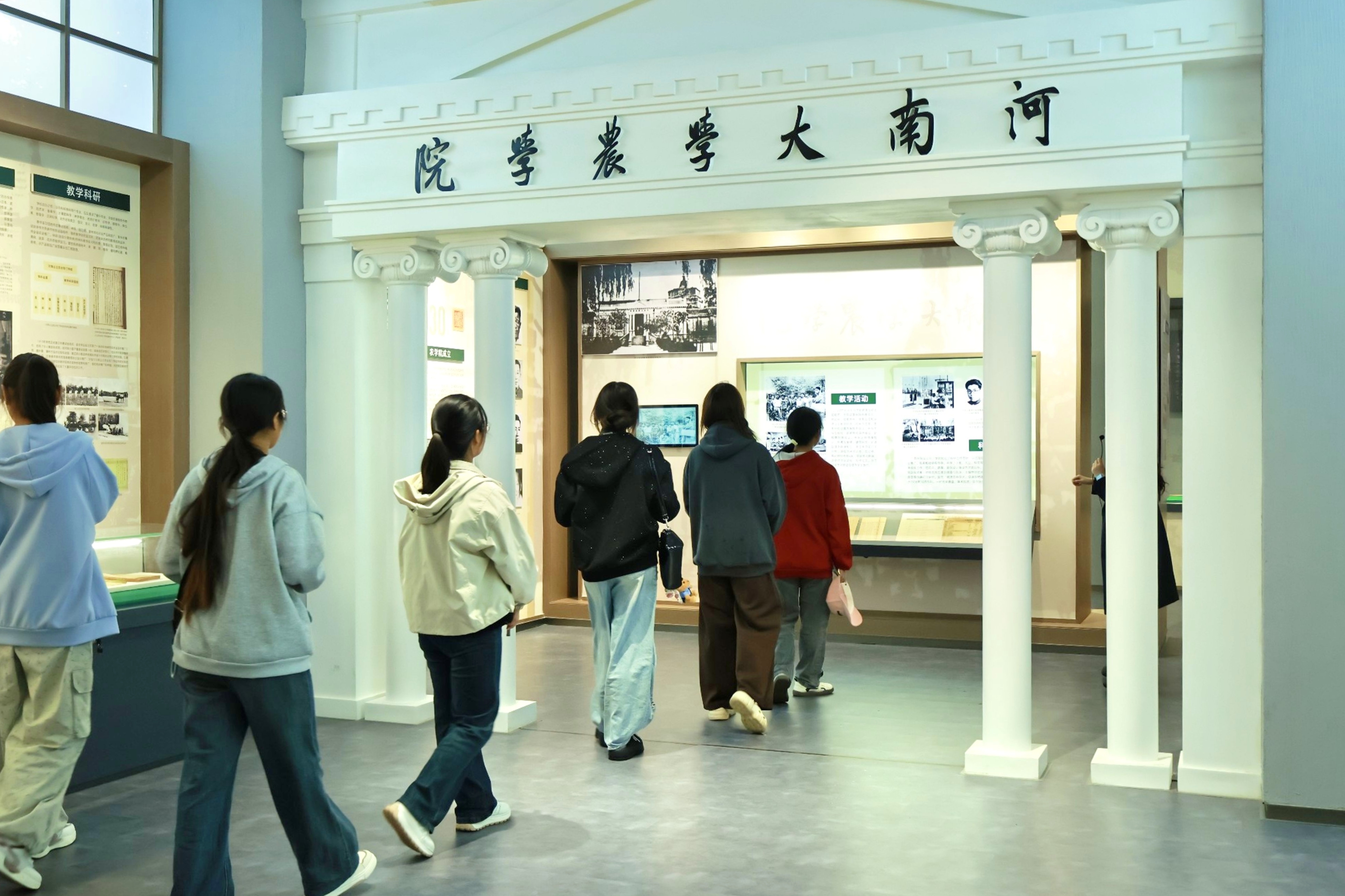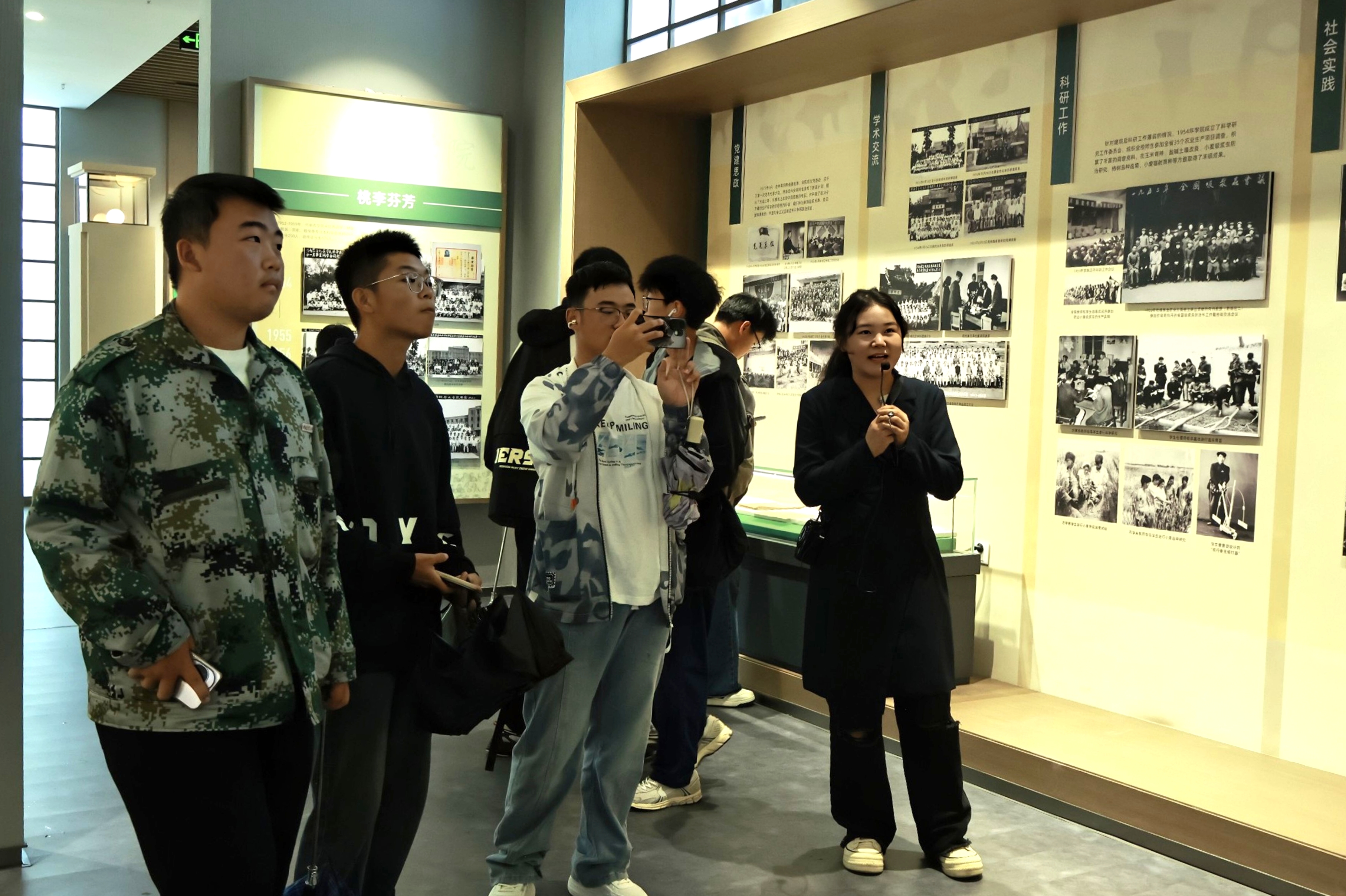活动现场,助班们有序组织引导,新生们整齐列队进入校史馆。在讲解员的带领下,大家沿着既定路线,开启了一场与学校历史的深度对话。馆内,详实的史料与生动的讲解,全方位展示了学校的发展历程。从创建沿革的艰难起步,到文化传承的薪火相传;从历代师生展现出的精神风貌,到他们取得的辉煌学术成果,无一不让人动容。特别是聆听一代代农大人攻坚克难、斩获荣誉的奋斗故事时,同学们仿佛置身其中,沉浸式感受着校史的温度与力量。