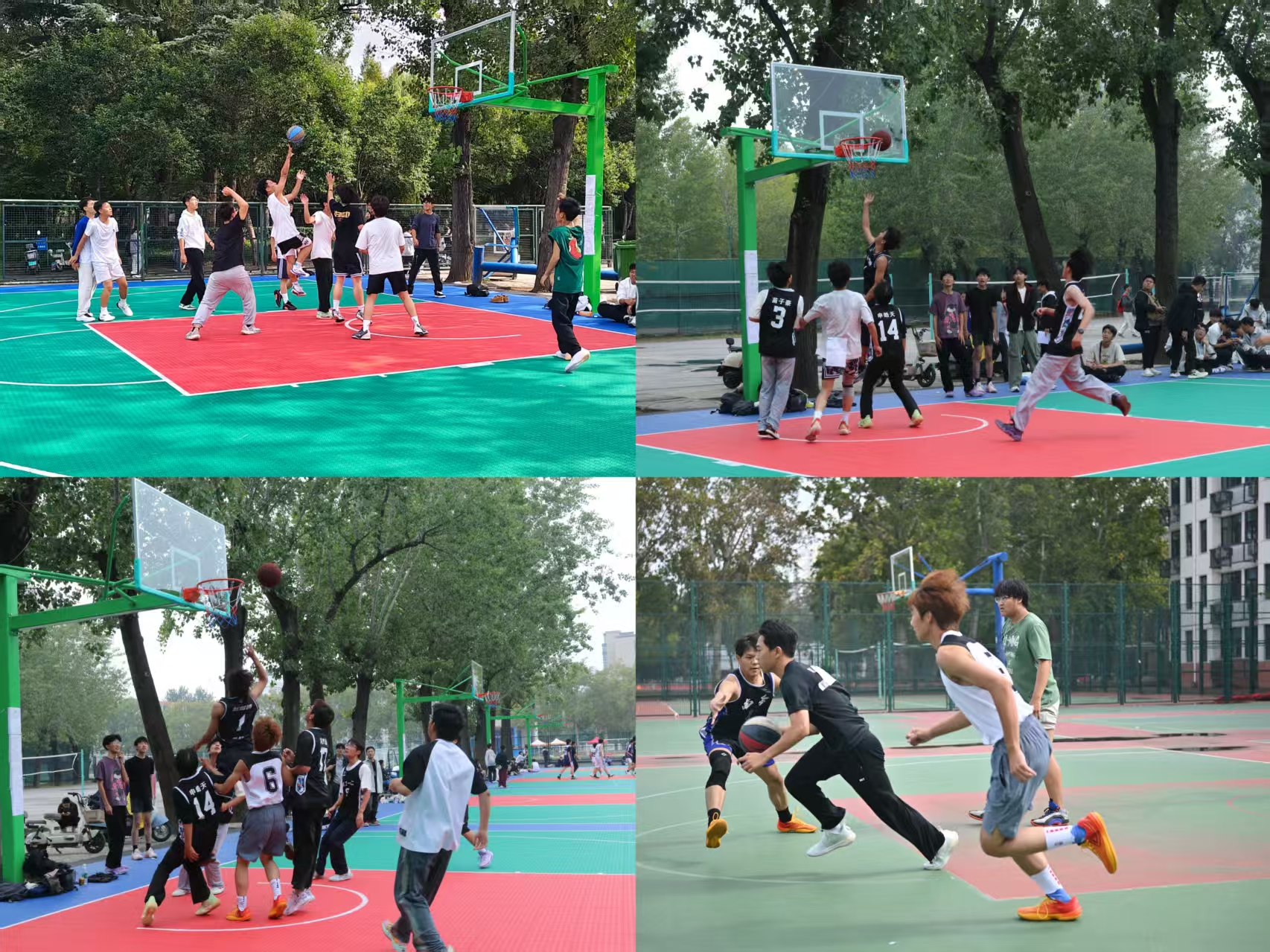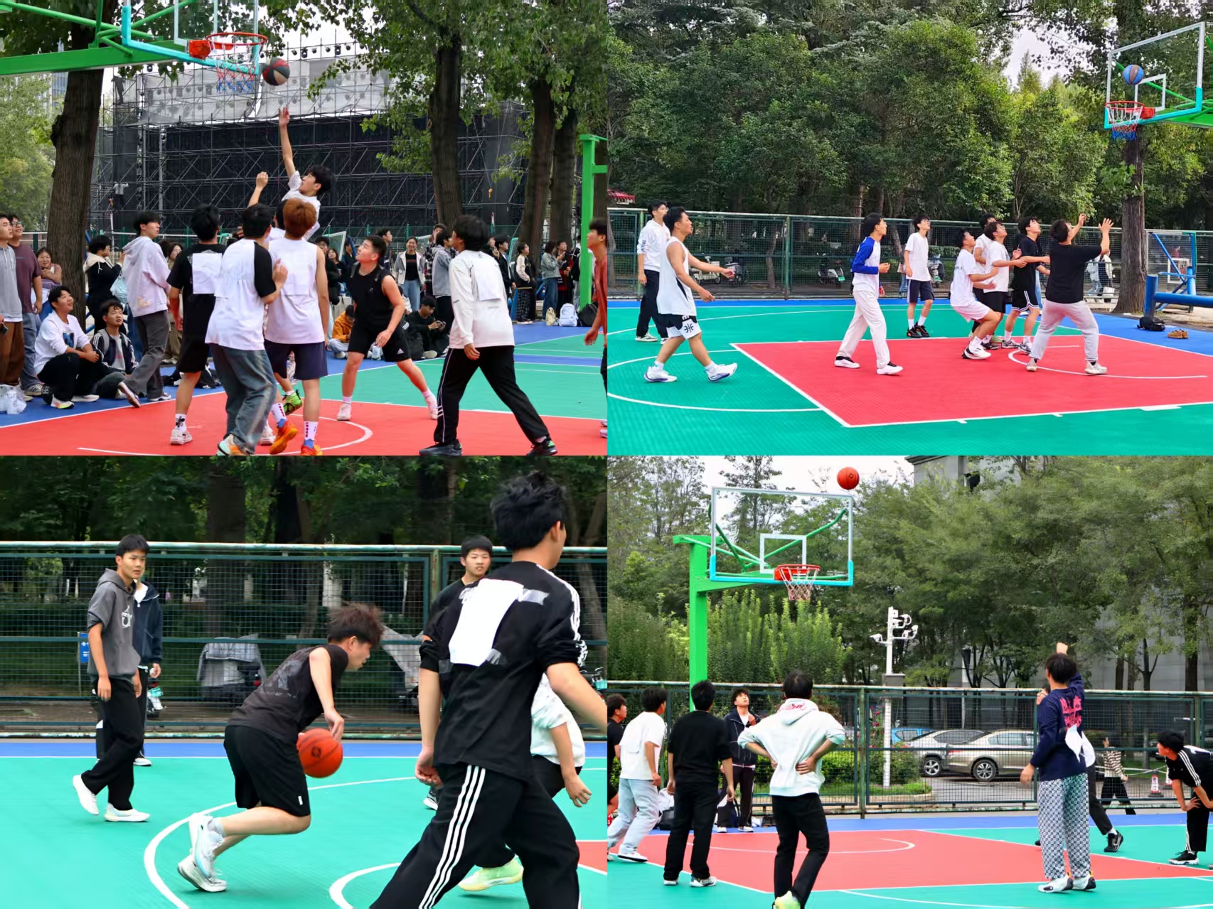 文化路校区操场激情上演。比赛期间,院党委副书记宋晶、院团委副书记胡亭亭、25级年级辅导员梁凯凯以及各班级助班悉数到场,为新生队员们加油鼓劲。本次篮球赛由院学生会体育部统一组织策划并进行裁判。