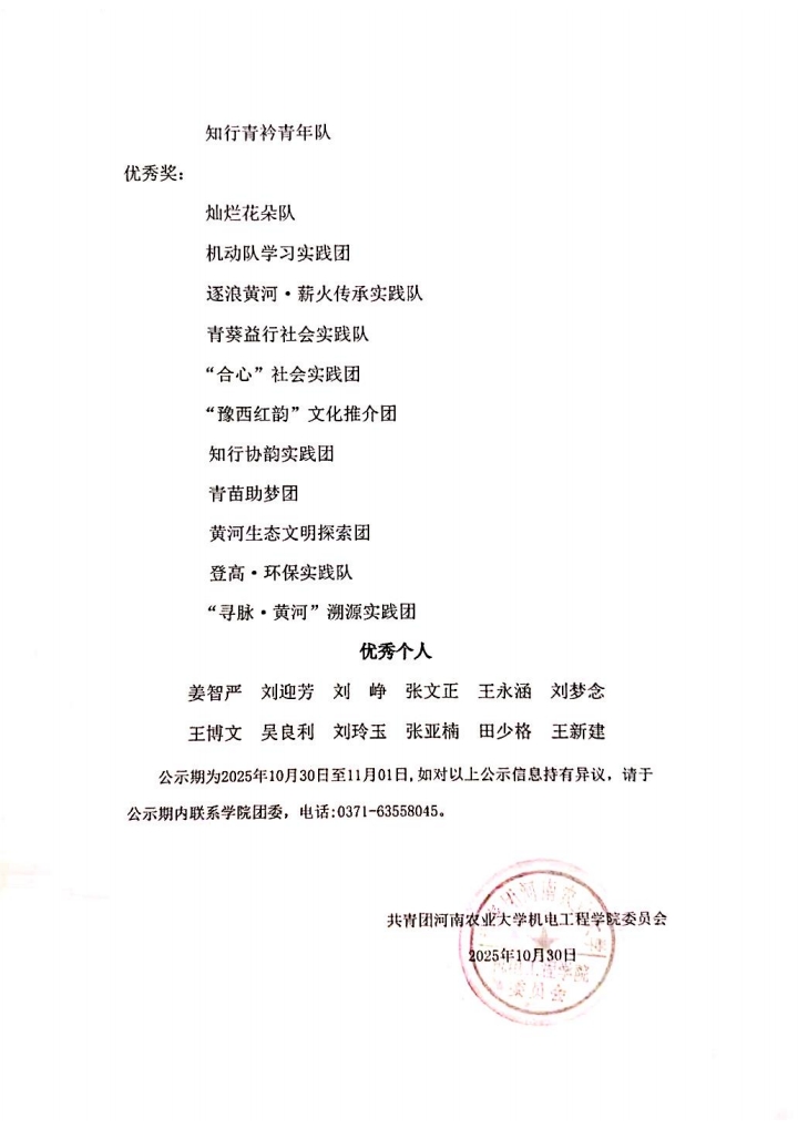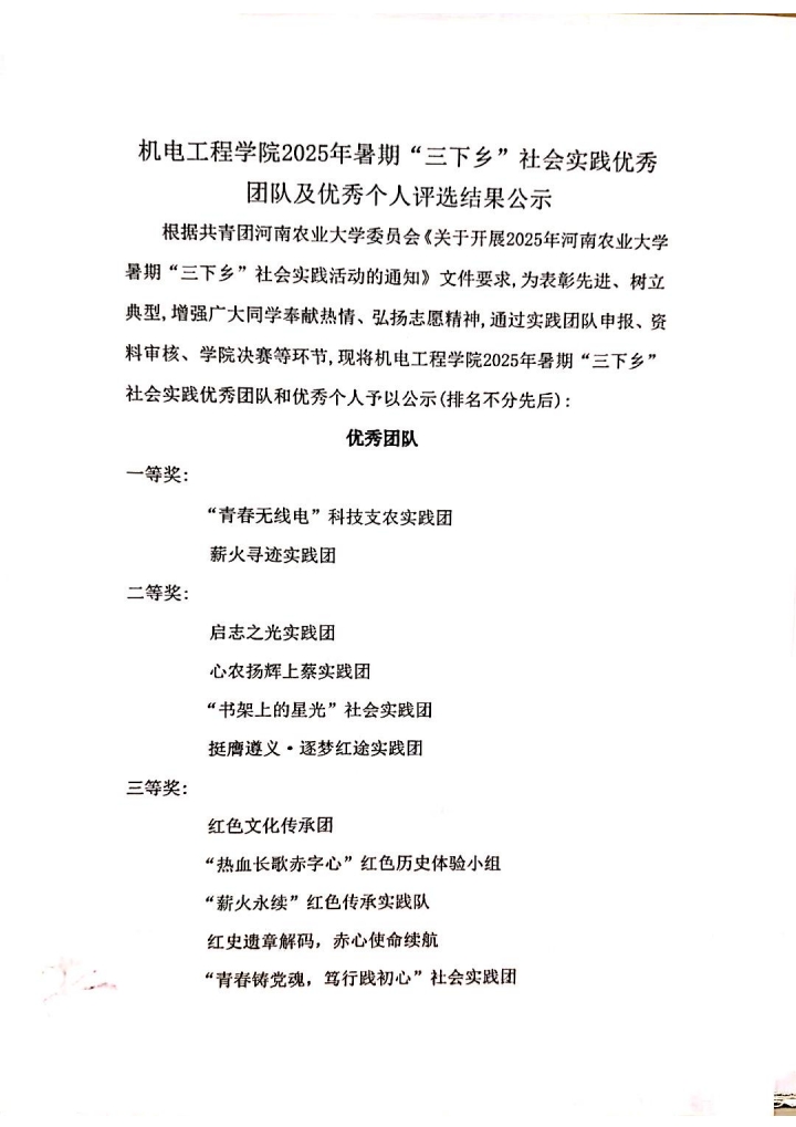 根据共青团成人小说 委员会《关于开展2025年成人小说 暑期“三下乡”社会实践活动的通知》文件要求,为表彰先进、树立典型,增强广大同学奉献热情、弘扬志愿精神,通过实践团队申报、资料审核、学院决赛等环节,现将成人小说 2025年暑期“三下乡”社会实践优秀团队和优秀个人予以公示(排名不分先后):
