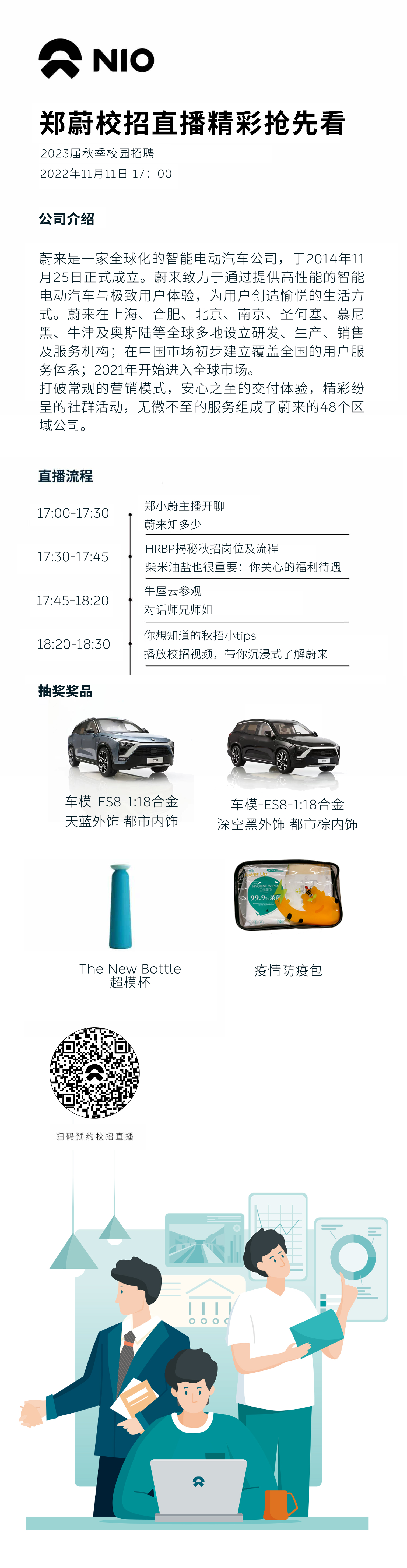 蔚来汽车秋招直播宣讲会预告来啦,更多精彩内容详见海报,快来查看吧~~