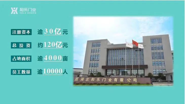 和乐门业集团总注册资金逾30亿元,总投资约120亿元,员工人数10000余人,总占地面积3000余亩。历经多年发展,和乐门业集团在湖北咸宁、四川成都、山东齐河、广西贵港、四川宜宾等地投资建设了多个门产业基地,同时建立多个门配套产品及服务企业,实现产品系列多元化和生产配套纵向一体化的能力,并在全国大中城市建有200多个渠道销售网点及100多个物流配送中心,业务范围覆盖全国各地,是国内规模最大的门企业之一。