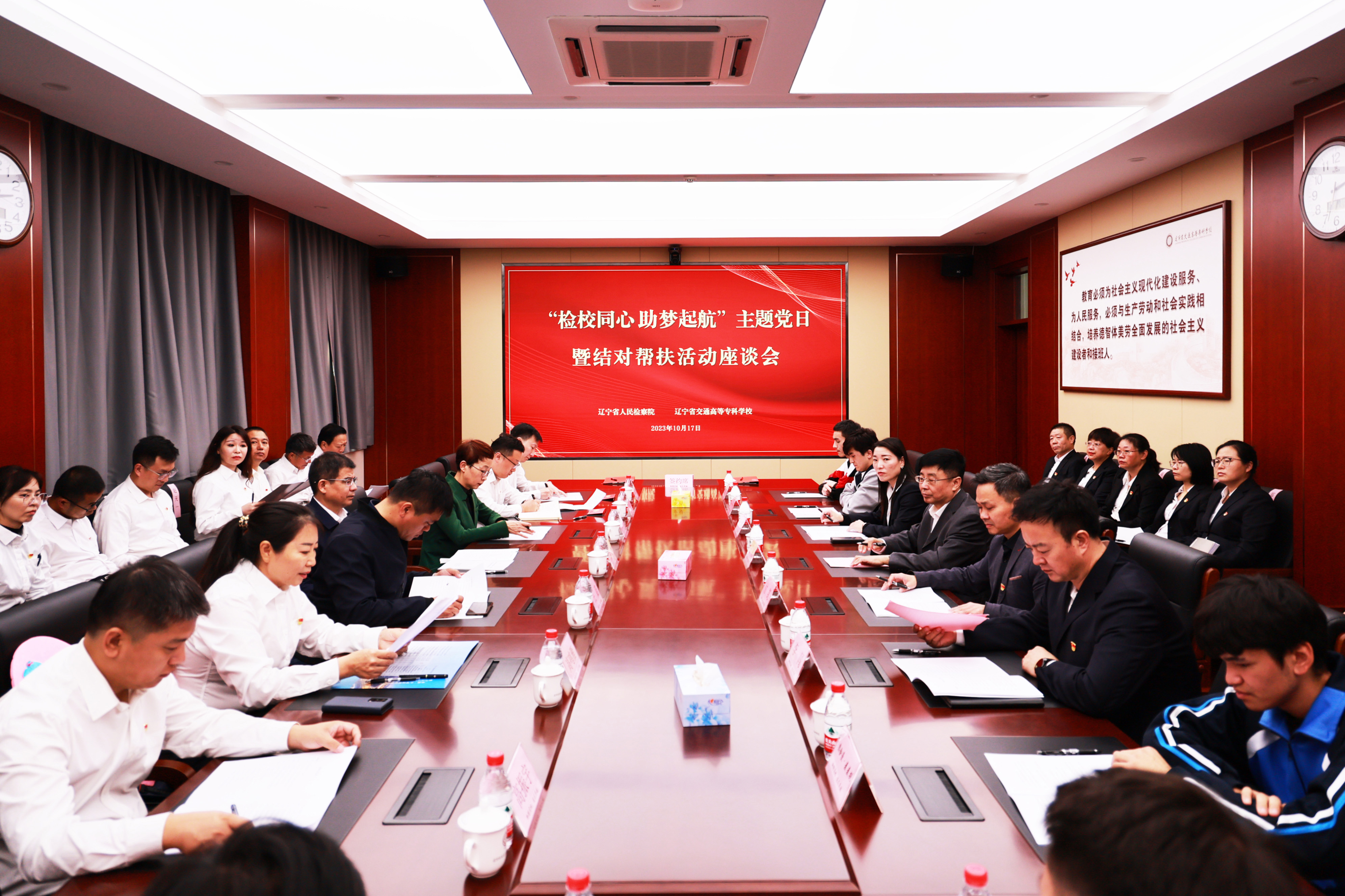 为深入贯彻落实中央民族工作会议和第三次中央新疆工作座谈会精神,推动省委政法委做好政法机关结对帮扶新疆籍少数民族困难学生工作要求走深走实,充分发挥检察机关服务群众职能作用,10月17日下午,成人小说 办公室党支部、第一检察部党支部走进辽宁省交通高等专科学校,联合开展“检校同心 助梦起航”主题党日暨结对帮扶新疆籍少数民族学生活动。