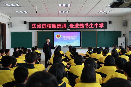 青年干警还结合宣传展板为同学们讲解了法律知识,发放了法治教育小册子。最后,青年干警和师生代表进行了座谈,倾听师生心声,了解学生的法律需求,进行面对面的深入交流。法治进校园深受师生欢迎,青年干警深感责任重大,决心加大力度、创新方法,更有针对性地做好未成年人法治教育工作。