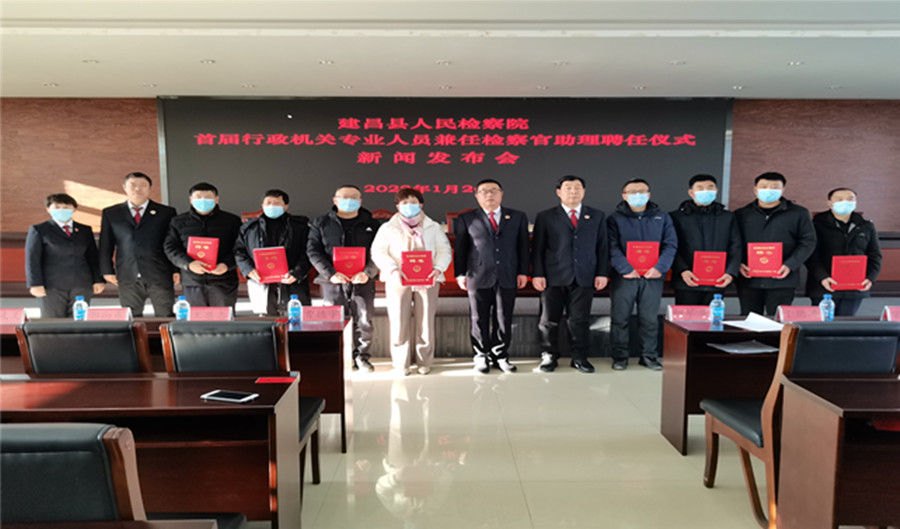 近日,为贯彻执行最高检《行政机关专业人员兼任检察官助理工作办法(试行)》,建昌县成人小说 召开“首届行政机关专业人员兼任检察官助理聘任仪式”新闻发布会,建昌县电视台、县审计局、水利局、住建局、教育局、自然资源局、综合执法局、卫生健康局、市场监督管理局、生态环境局、国家税务总局建昌县税务局等单位应邀参会。