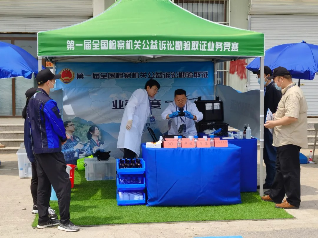 竞赛由模拟现场勘验采样与快速检测、环境损害勘验采样和现场检测基础知识考试、无人机航拍取证三个环节组成。其中,5月11日开赛的模拟现场勘验采样与快速检测环节,包括勘验采样、水质快速检测和土壤快速检测三部分。参赛检察官、检察技术人员需要在规定时间内对水质、土壤样品进行快速检测,并分别出具水质和土壤检测报告。