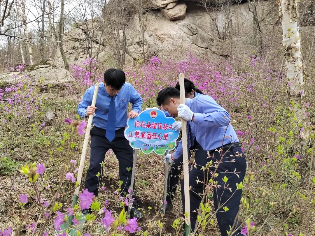 今年“五四青年节”前夕,本溪青年检察官先锋队本溪县分队再度集结,与公益诉讼检察官共同化身护花使者,走进老边沟、青石岭、观音山等兴安杜鹃集中分布处,送上“量身定制”的保护宣传牌。