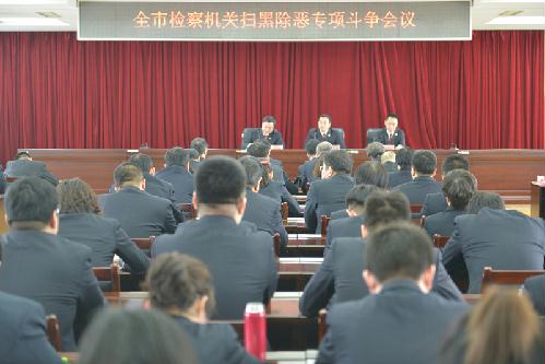 市院领导班子成员,检委会专职委员,市院各部门负责人,扫黑除恶领导小组成员部门全体干警,基层院检察长、公诉科科长参加会议。