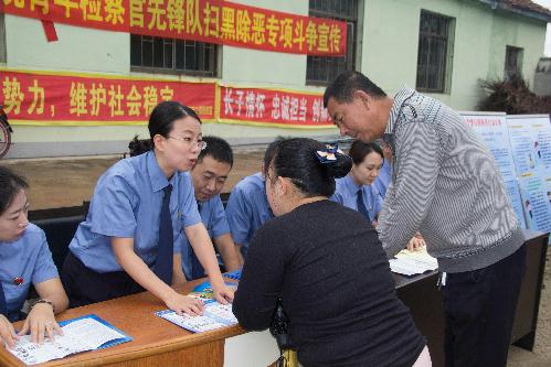 在人流密集的农村集市上,摆放精心原创设计的展板,悬挂清晰醒目的条幅,发放五百余份宣传资料,现场为近千名群众答疑释惑,引导鼓励提供违法犯罪线索;在老百姓家的炕沿上,亲切地与群众聊天,把党和政府关于扫黑除恶专项斗争的工作部署用家常话讲给他们听,让他们充分了解开展扫黑除恶专项斗争的重要意义,介绍打击整治重点以及涉黑涉恶举报方式等……