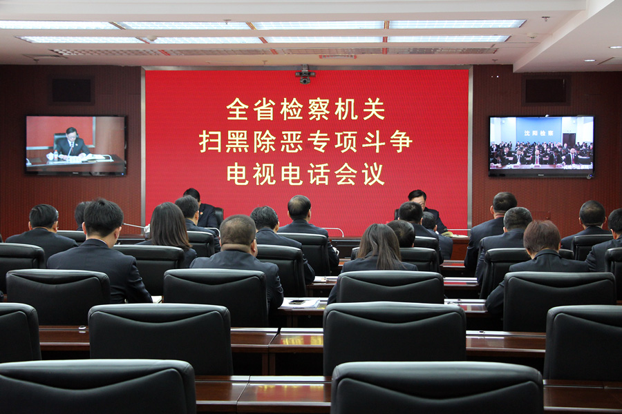4月10日,辽宁成人小说 召开全省检察机关扫黑除恶专项斗争电视电话会议,深入学习贯彻习近平总书记在中央政法工作会议上的重要讲话和关于扫黑除恶专项斗争系列重要指示、批示精神,全国扫黑除恶专项斗争领导小组视频会议精神,省扫黑除恶专项斗争领导小组会议精神,全面落实中央、省委的工作部署,对今年全省检察机关扫黑除恶专项斗争工作进行全面部署。省院党组成员、副检察长、省院扫黑除恶专项斗争领导小组副组长吕景文主持会议。